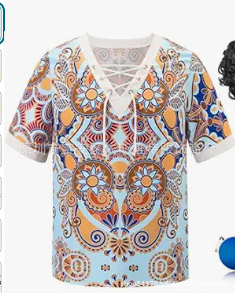 2023wish Amazon 유럽과 미국의 새로운 남성 가슴 타이 치킨 아이 슬리브 티셔츠 프린트 번트 셔츠