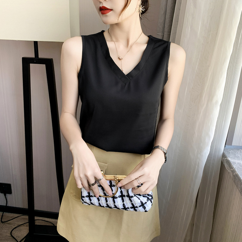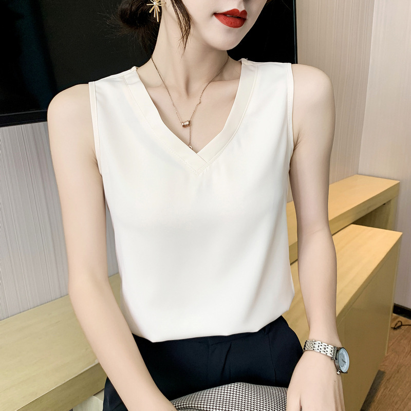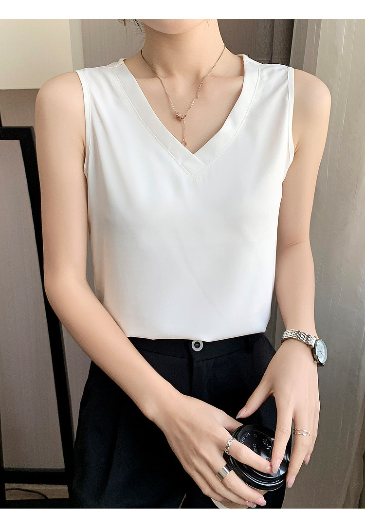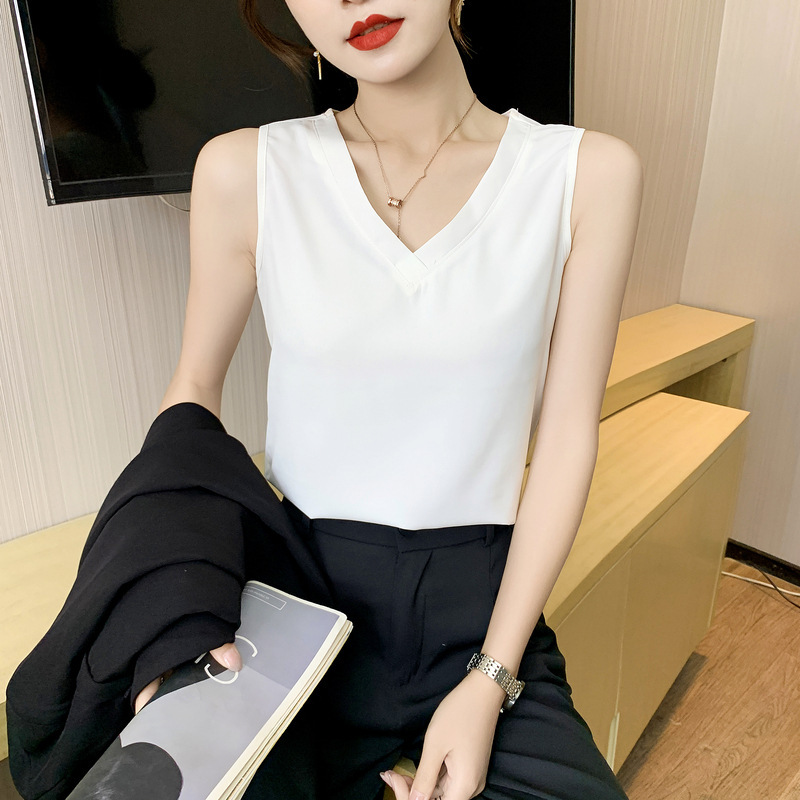 여름을위한베이스 쉬폰 화이트 루즈한 탑이있는 캐미솔 여성용 세트스토어 가기