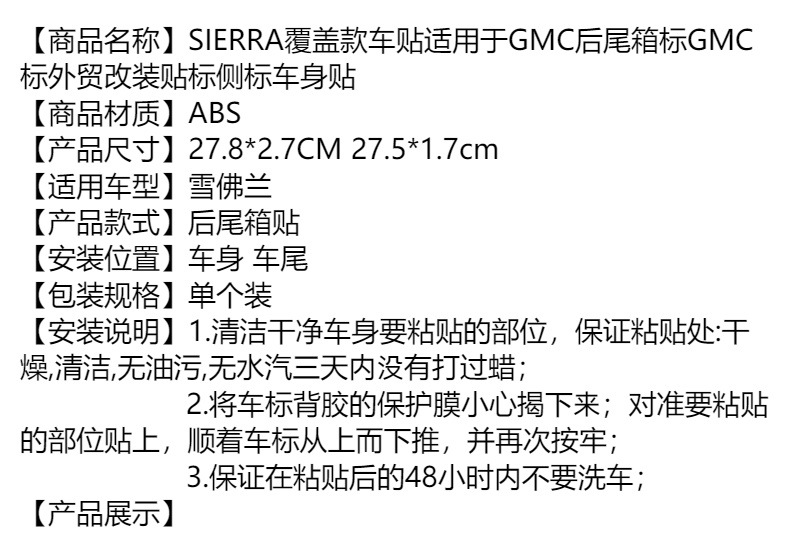 SIERRA 커버 자동차 스티커는 GMC 리어 테일 박스 로고 GMC 로고 대외 무역 수정 스티커 사이드 로고 자동차 바디 스티커에 적합합니다.스토어 가기