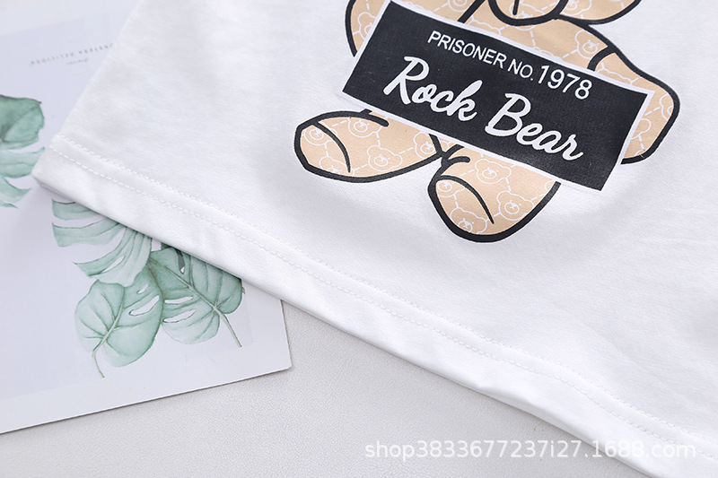 어린이 반팔 트렌디 쿨 베어 세트 여름 소년 반바지 투피스 세트 새로운 라운드 넥 반팔 반바지 공장 직접 판매스토어 가기