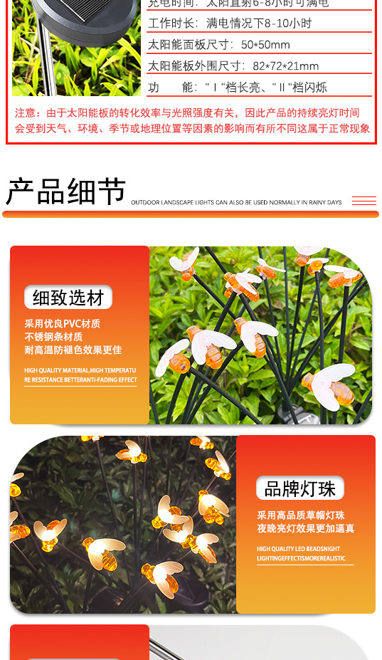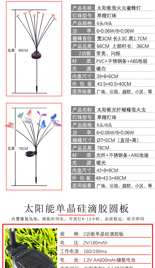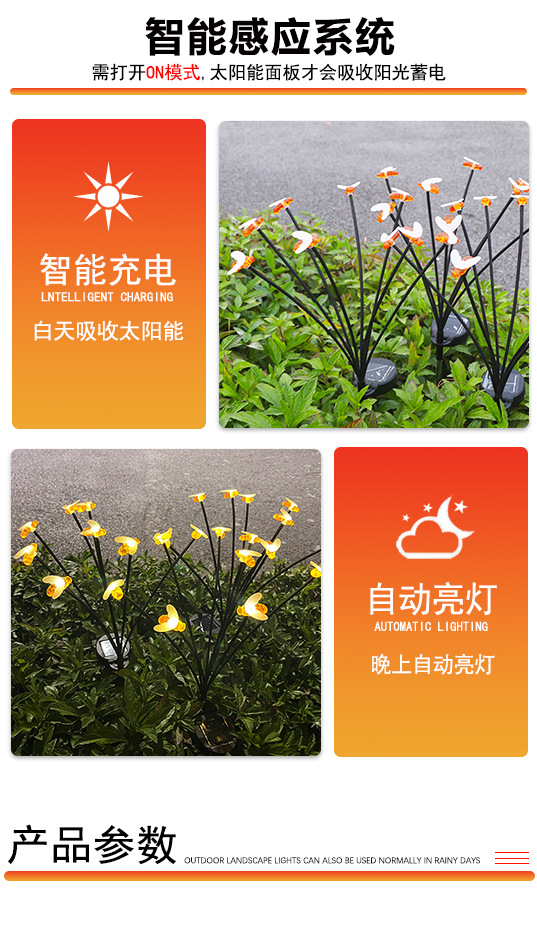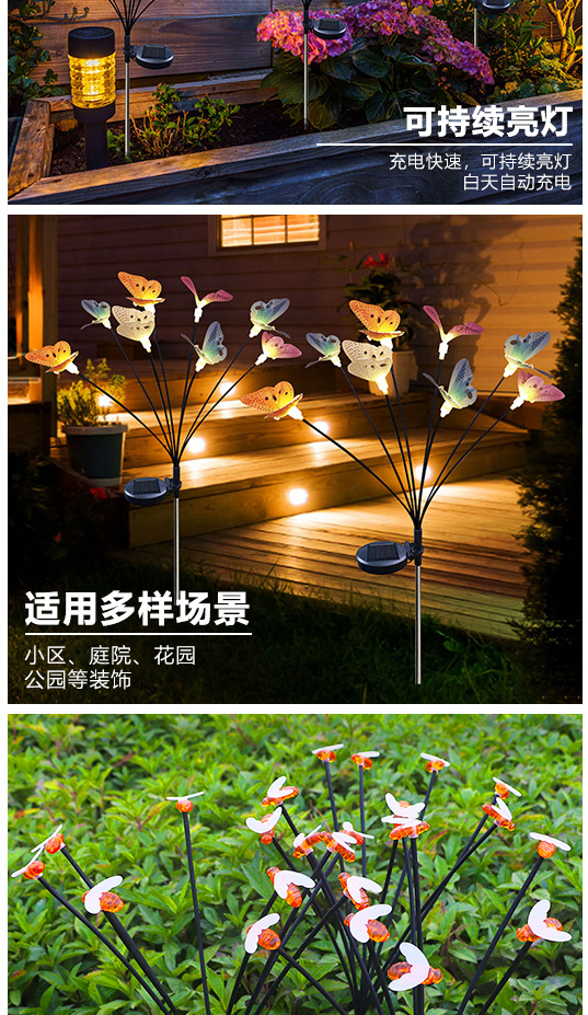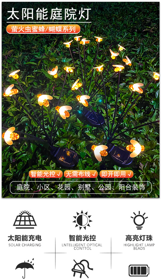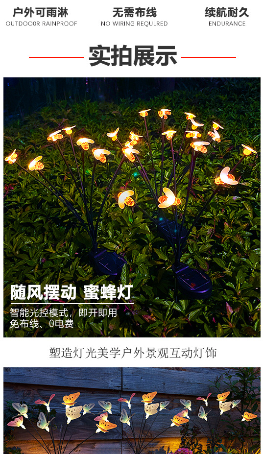 Led 야외 태양 반딧불 램프 꿀벌 램프 나비 램프 안뜰 잔디 램프 자동 유도 갈대 램프스토어 가기