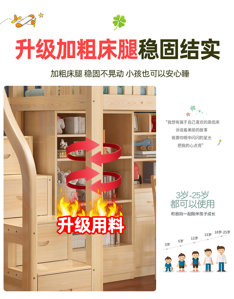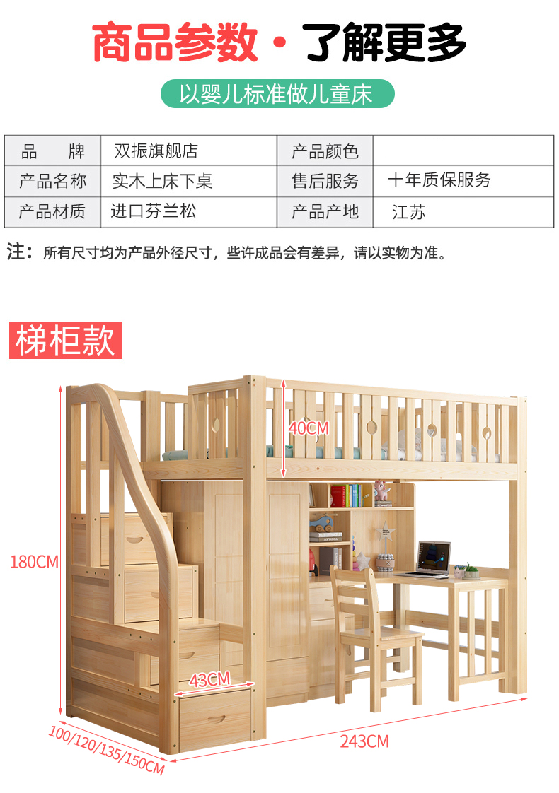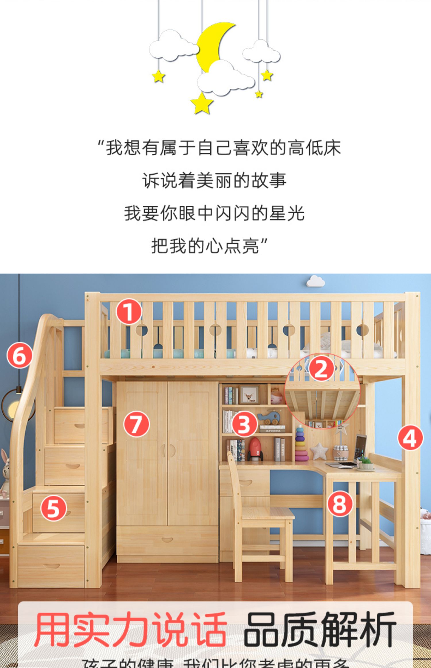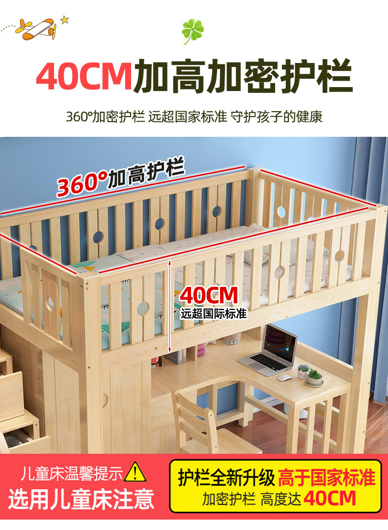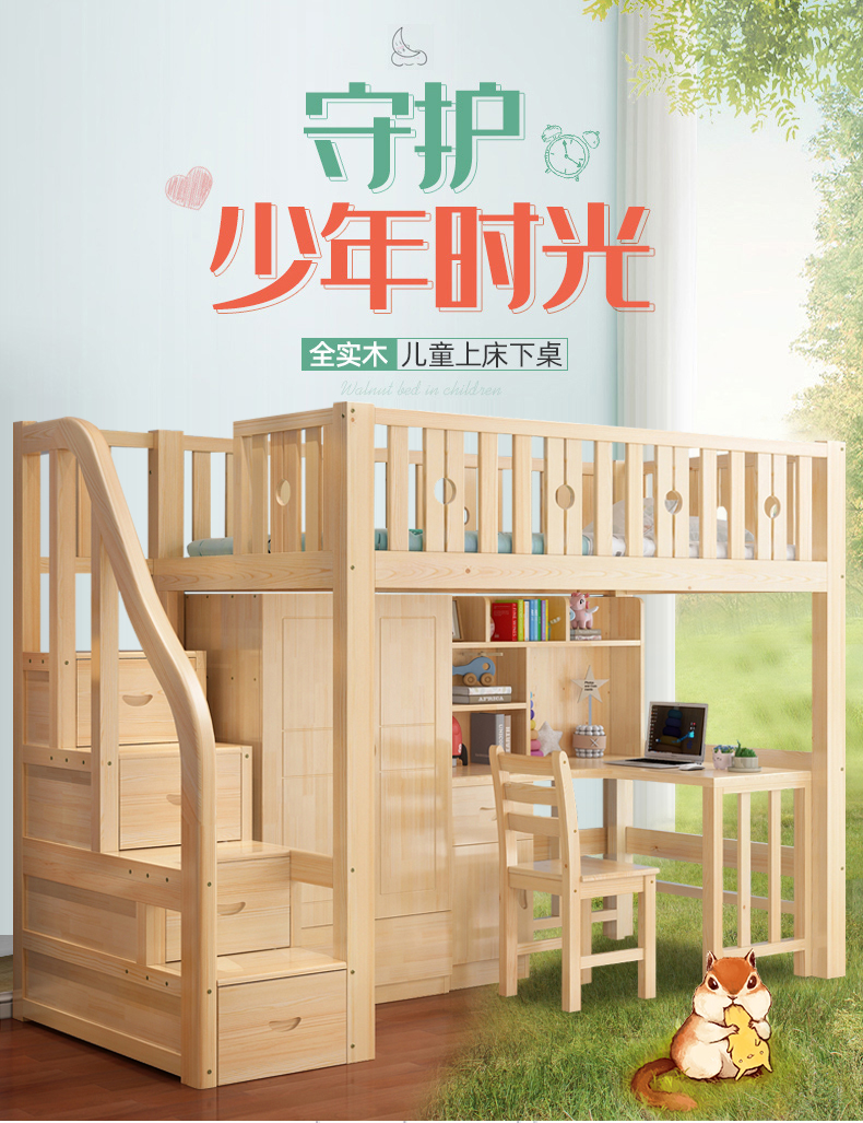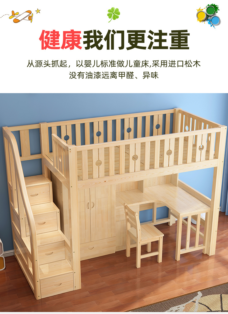 도매 어린이 침대 테이블 제기 침대 다기능 조합 이층 침대 책상 옷장 높이