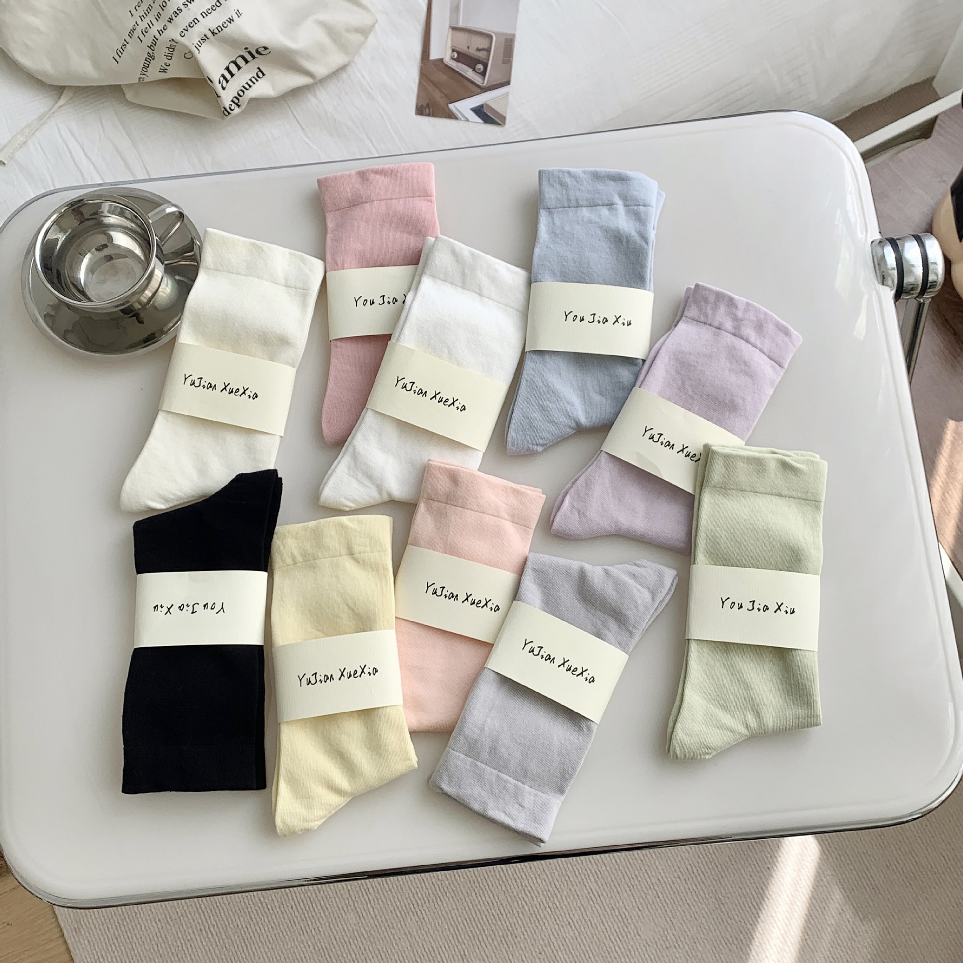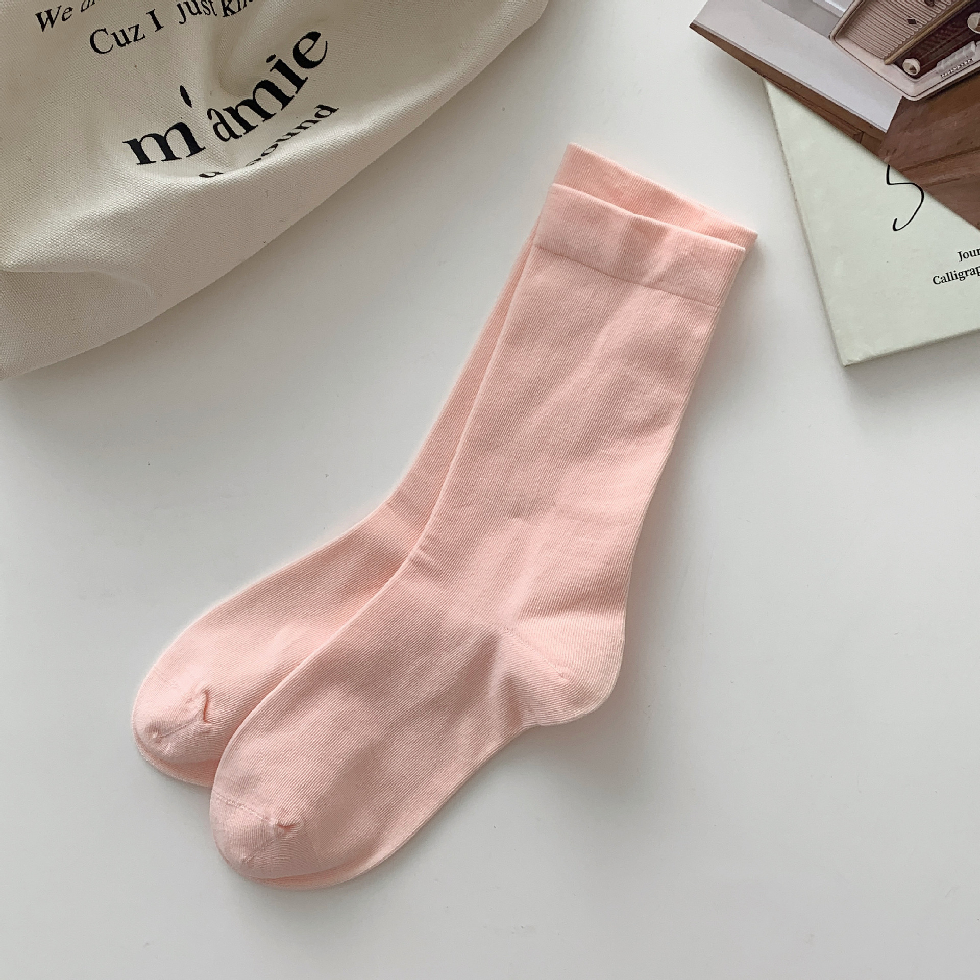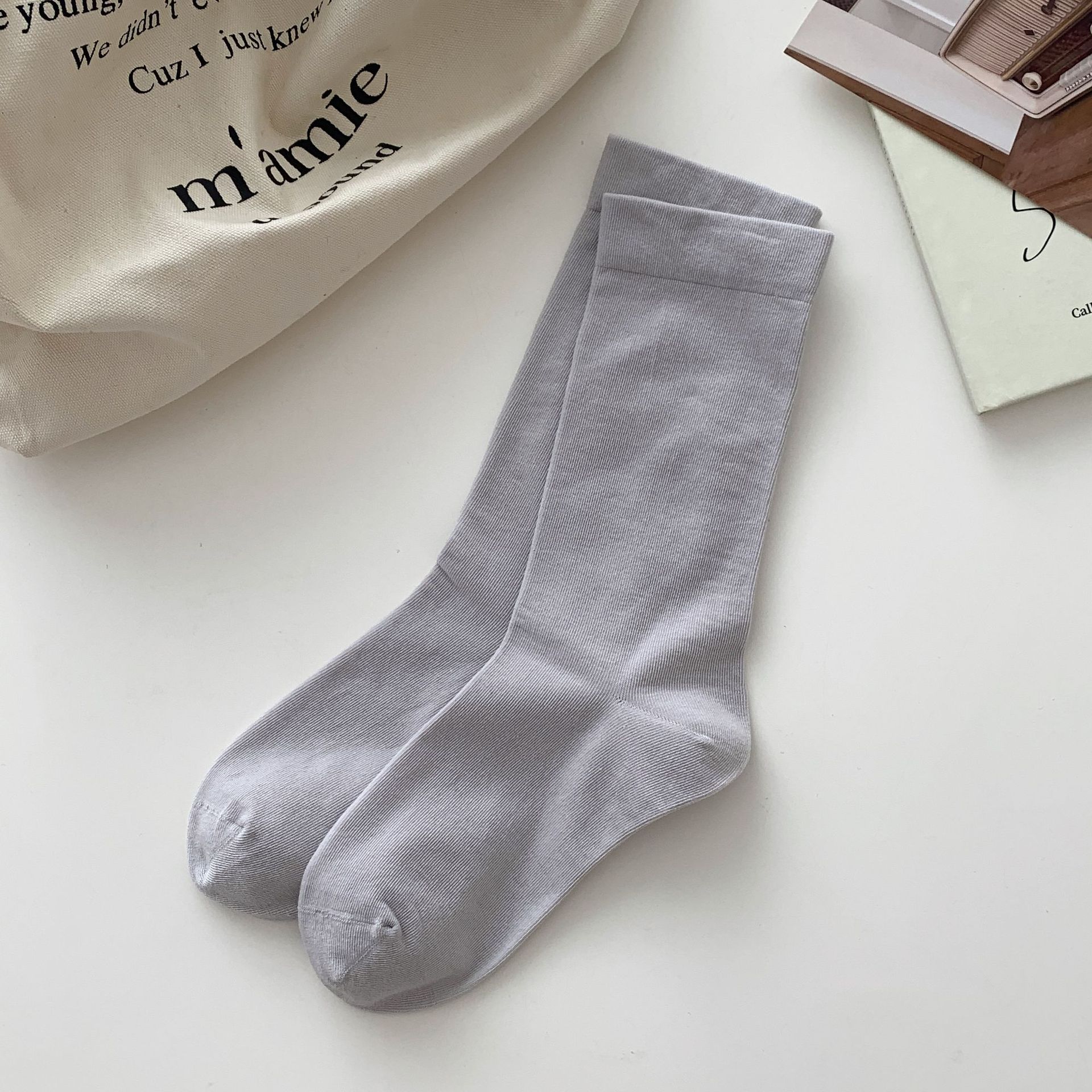양말 여름 여아 뼈없는 달 양말 일본 여성용 중간 길이 양말 면 봄과 여름 얇은 캔디 컬러 스택스토어 가기