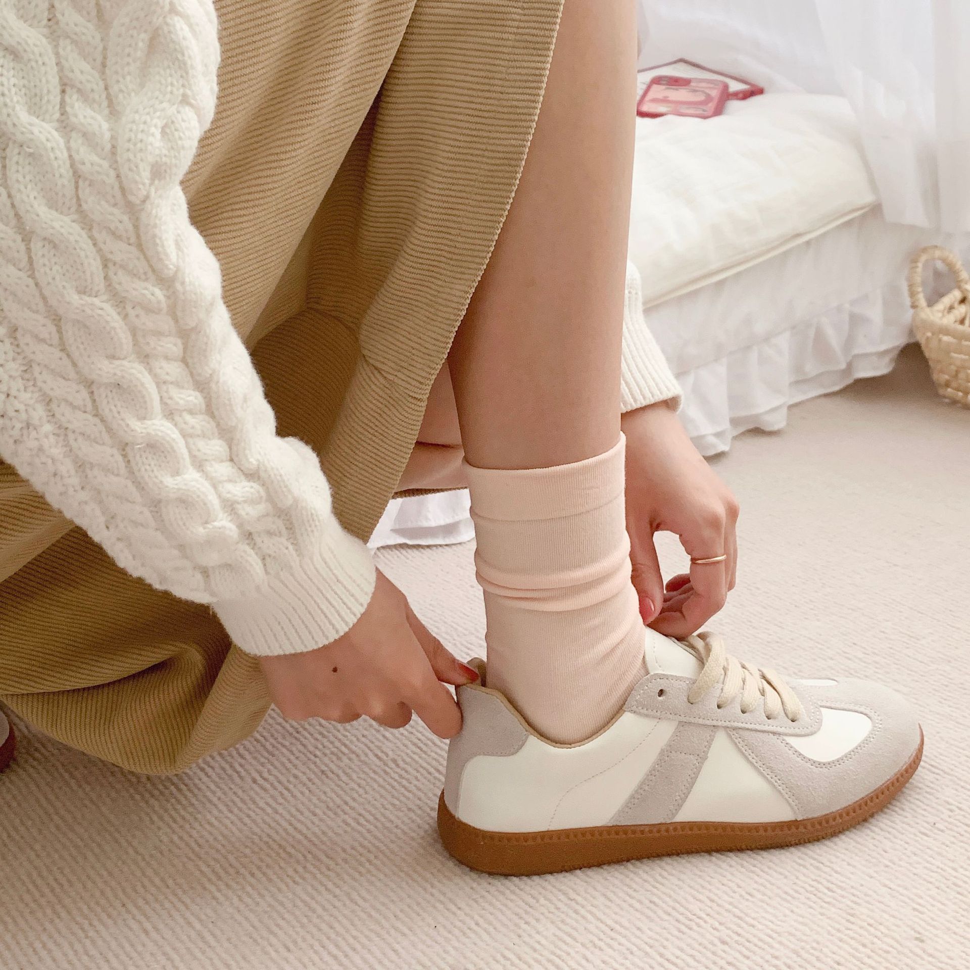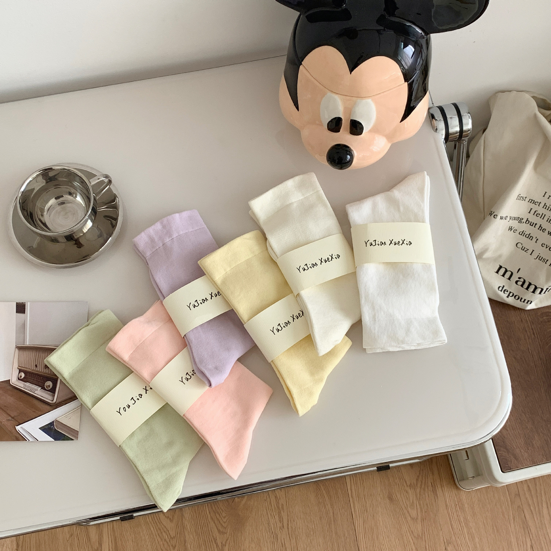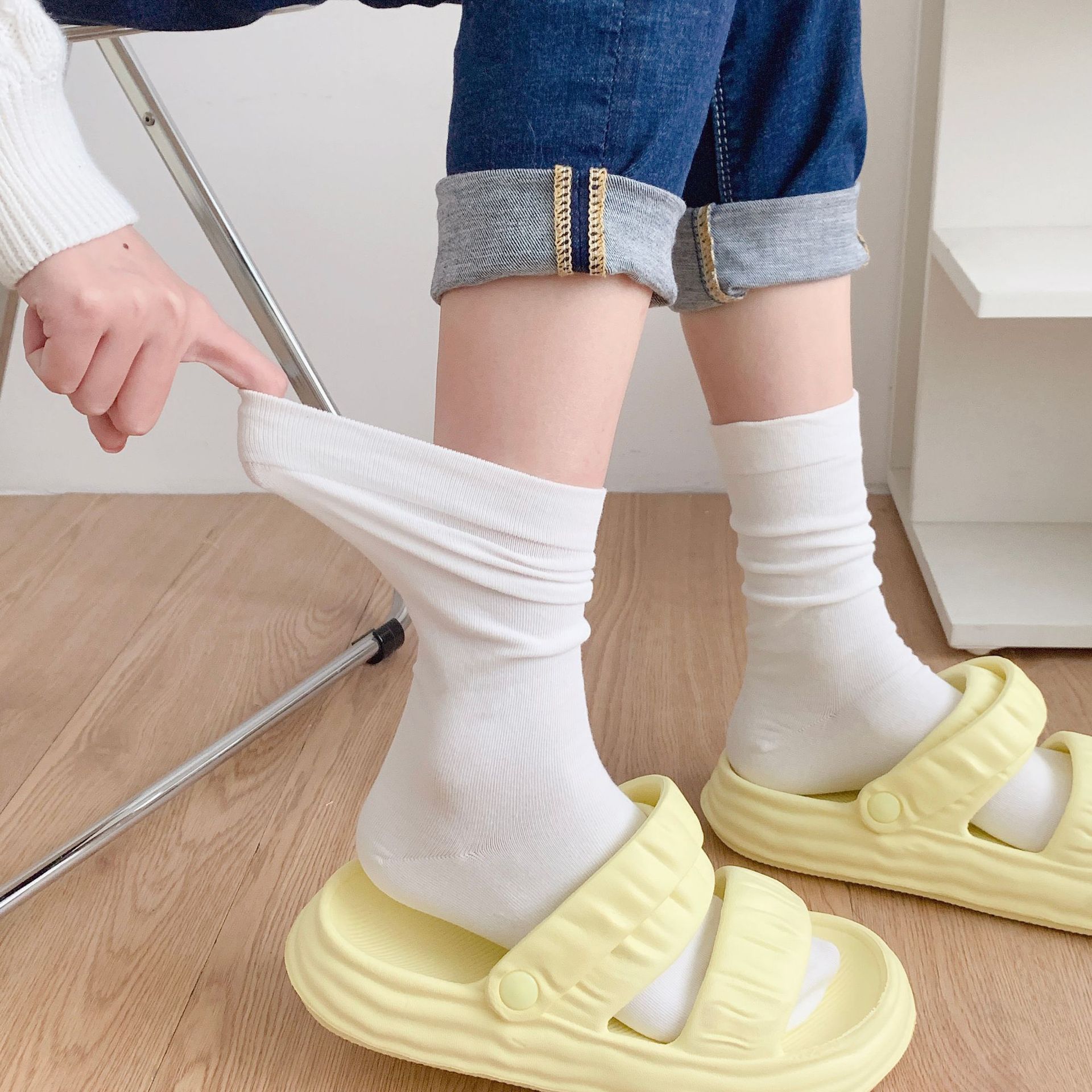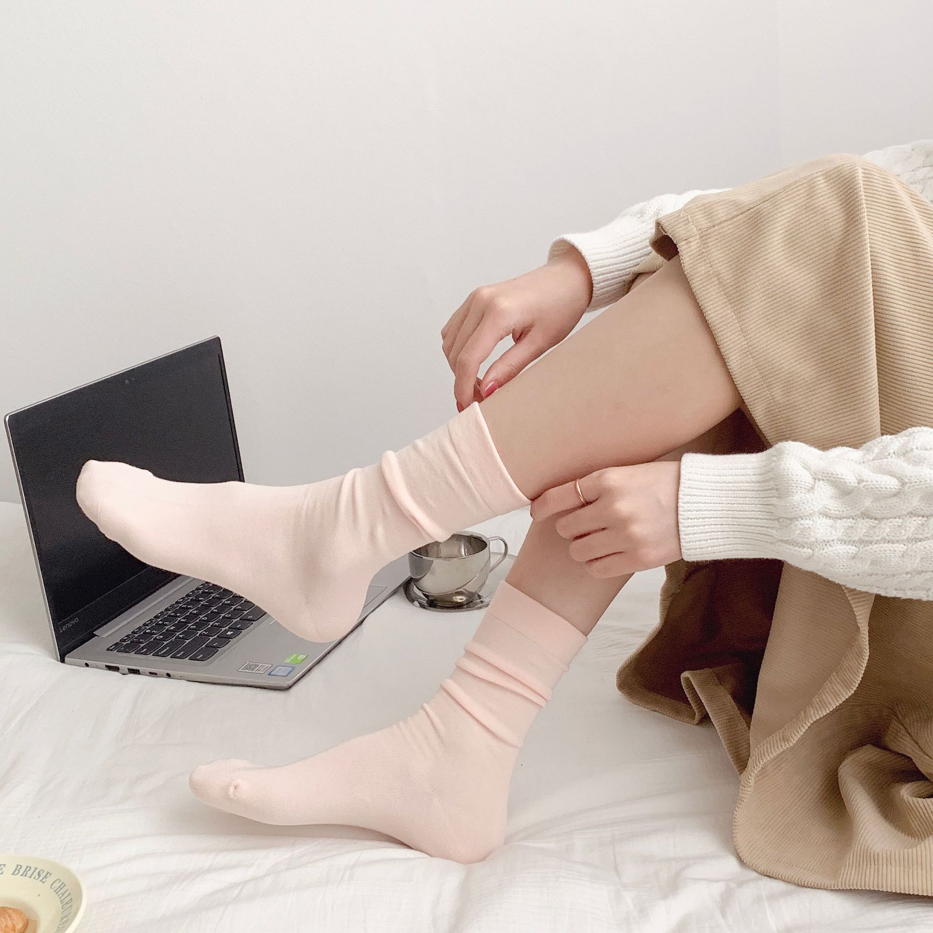 양말 여름 여아 뼈없는 달 양말 일본 여성용 중간 길이 양말 면 봄과 여름 얇은 캔디 컬러 스택스토어 가기