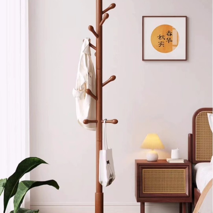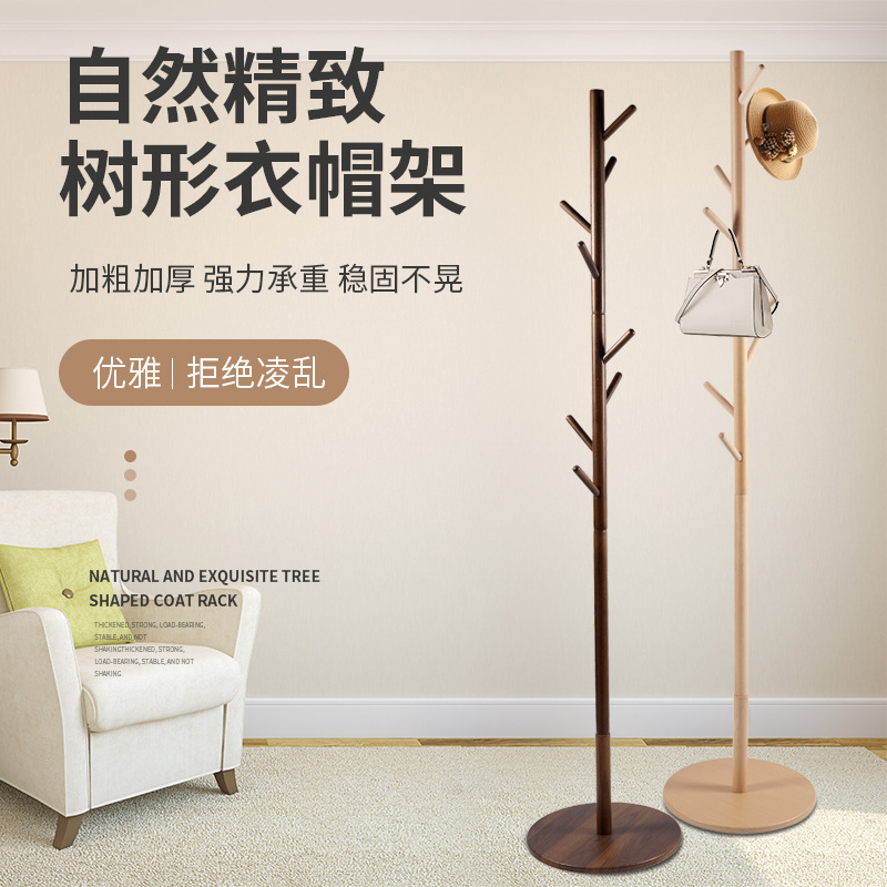단단한 나무 코트 랙 가정용 간단한 단단한 나무 옷걸이 너도밤 나무 코트 랙 거실 침실 바닥 코트 랙