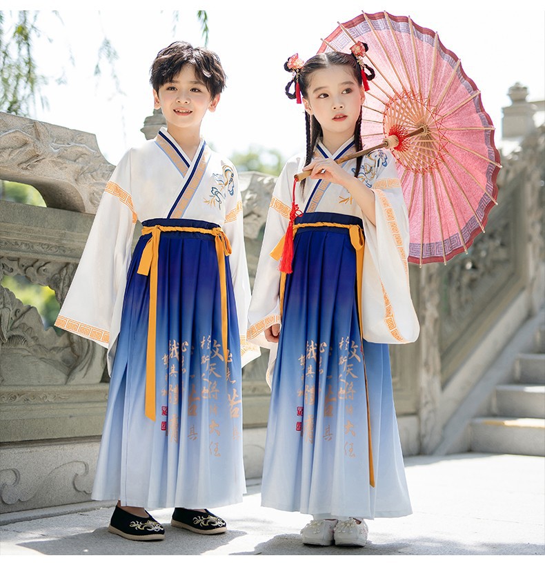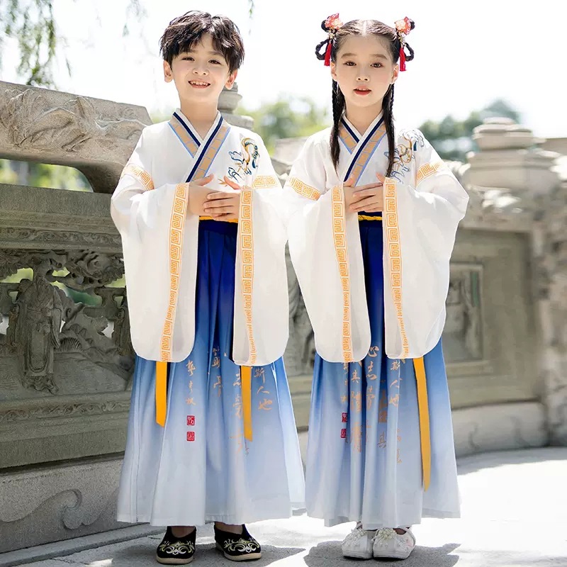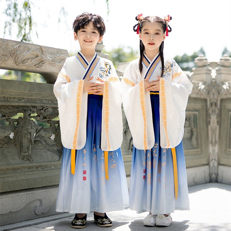 Hanfu 소년 Guoxue 의류 중국 스타일 고대 의상 책 아동 의류 3 자 경 제자 규정 초등 학생을위한 어린이 공연 의류스토어 가기