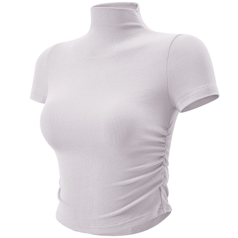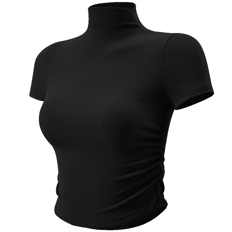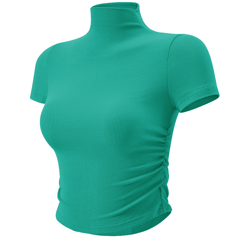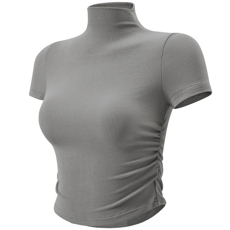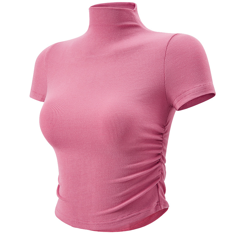 크로스 보더 스몰 하이 넥 스포츠 탑 여성용 플리츠 슬림핏 요가 의류 얇은 러닝 피트니스 반팔 티셔츠스토어 가기