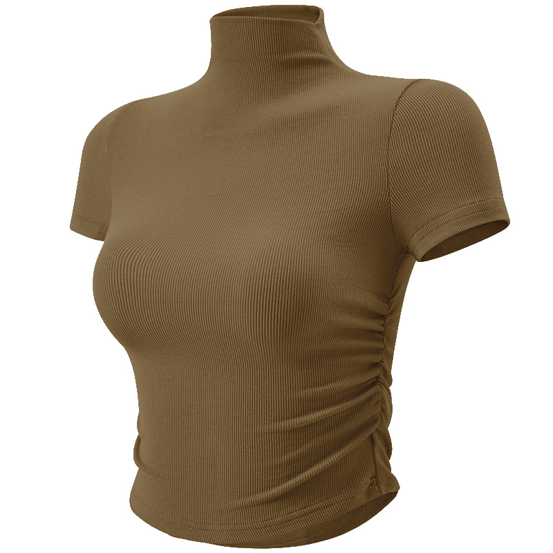 크로스 보더 스몰 하이 넥 스포츠 탑 여성용 플리츠 슬림핏 요가 의류 얇은 러닝 피트니스 반팔 티셔츠