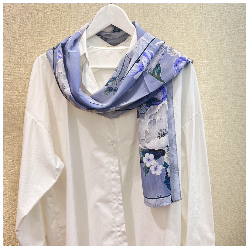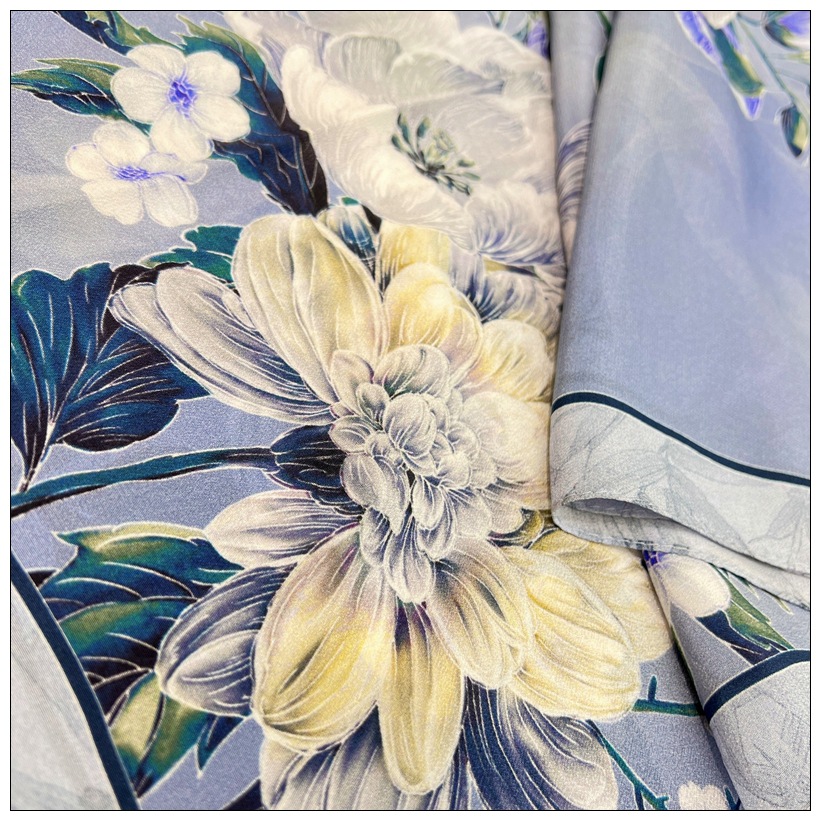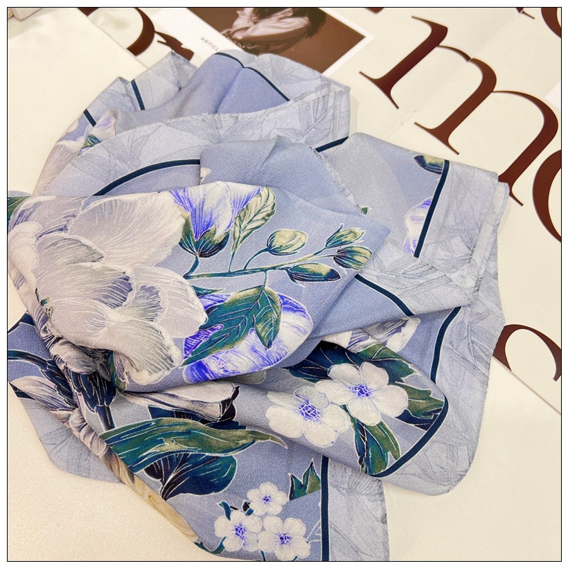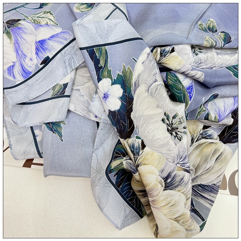 한정판 블루 인챈트리스 앤틱 뽕나무 실크 더블 주름 실크 스카프 여성 가을 외부 숄스토어 가기