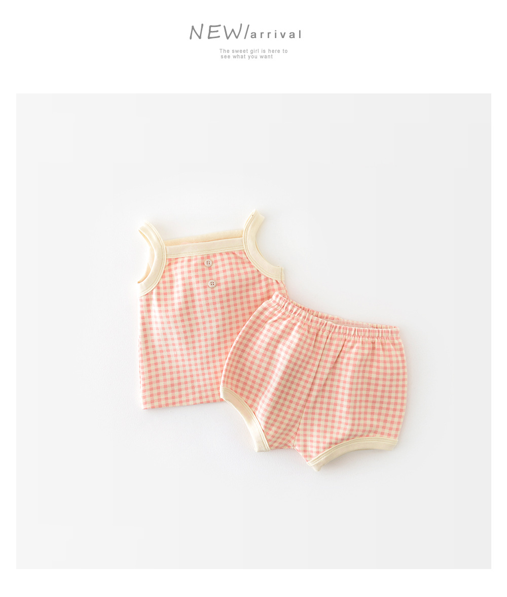 아기 세트 여름 잠옷 새로운 한국 스타일 아기 얇은 캐미솔 반바지 소년과 소녀 가정 옷스토어 가기