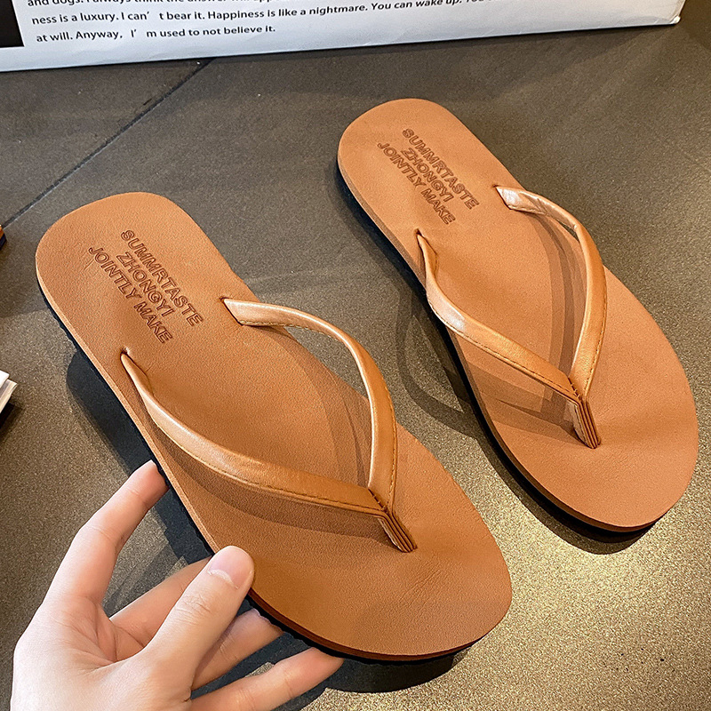 남성용 슬리퍼 블랙 PU 가죽 애호가 착용 유행 해변 휴가 온라인 여성을위한 인기있는 플랫 플립 플롭