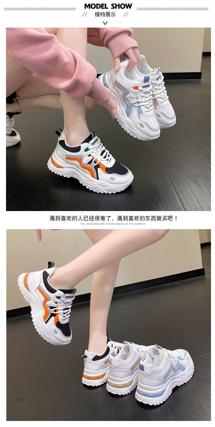 2025년 봄 가을 여성용 아웃도어 런닝화, 홍콩 스타일 메쉬 통기성 플랫폼 슈즈, 레이스업 배색 여성 캐주얼 운동화스토어 가기