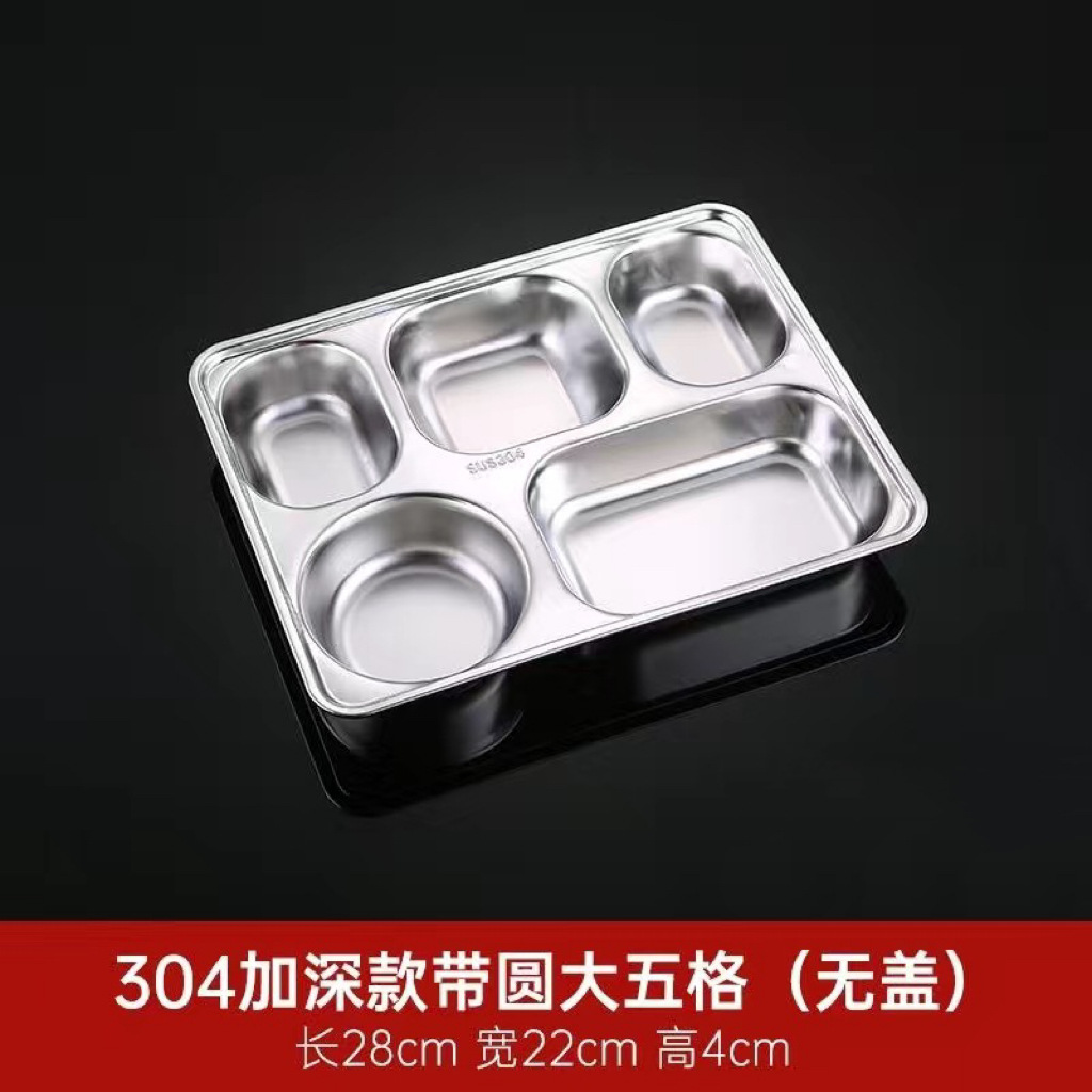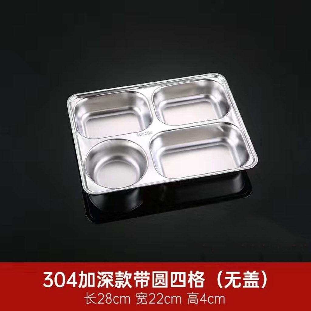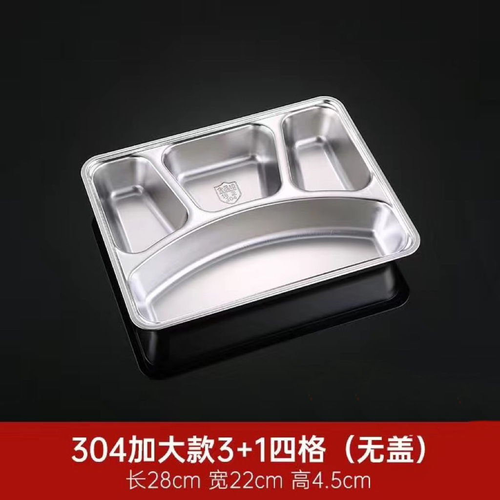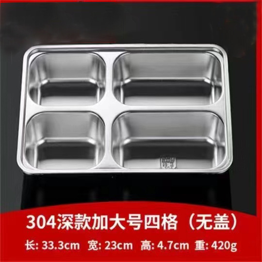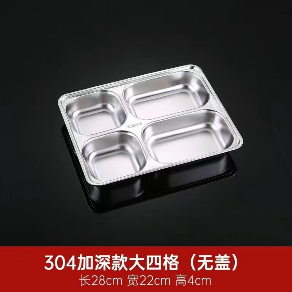 304 스테인레스 스틸 디너 플레이트 도시락 뚜껑 깊은 분할 디너 플레이트 사각 분할 도시락 매점 식사 학생 도시락스토어 가기
