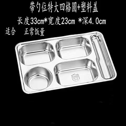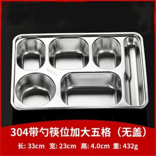 304 스테인레스 스틸 디너 플레이트 도시락 뚜껑 깊은 분할 디너 플레이트 사각 분할 도시락 매점 식사 학생 도시락