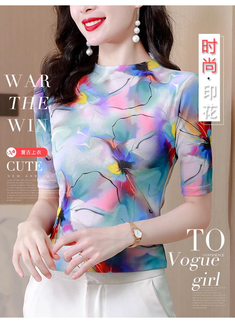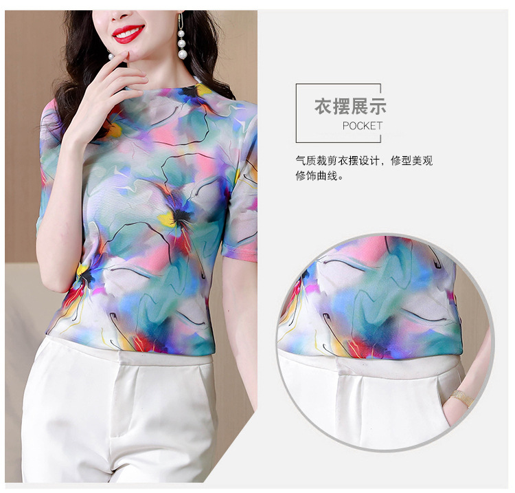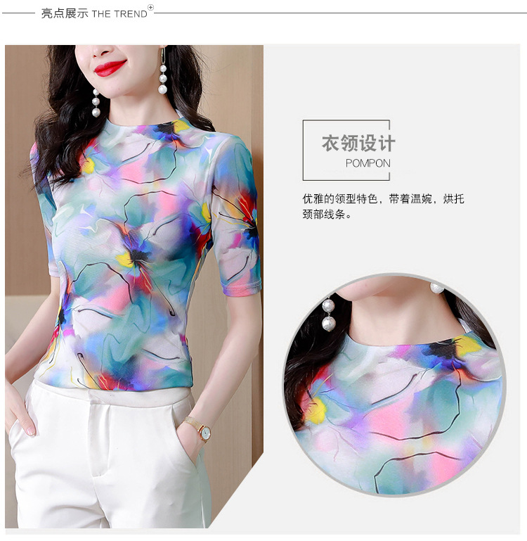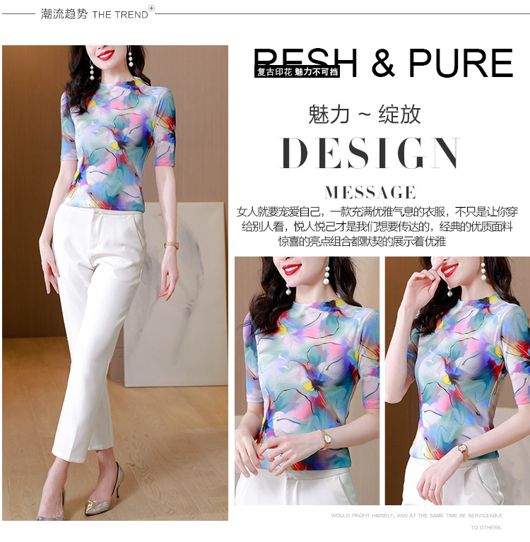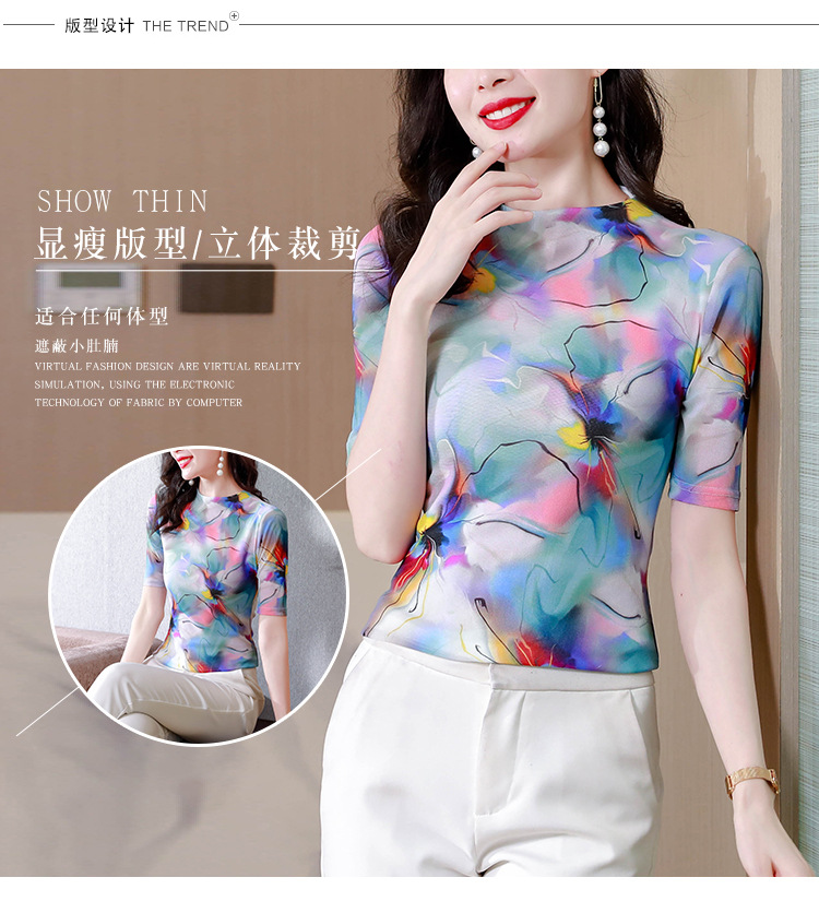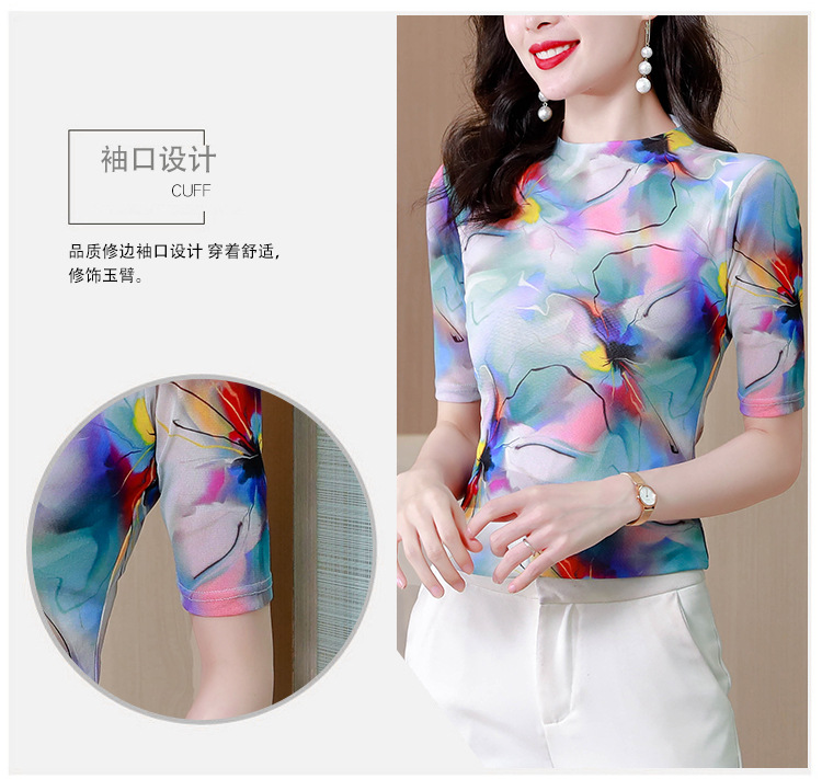 재고 플러스 사이즈 메쉬 더블 레이어 베이스 셔츠 중년 및 노인 여성용 2023 여름 새로운 반팔 올 매치 티셔츠 탑스토어 가기