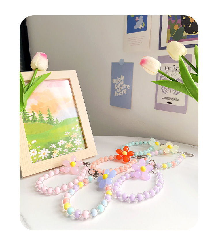 꽃 라운드 구슬 교수형 체인 인터넷 연예인 작은 신선한 마카롱 색상 매칭 휴대 전화 교수형 체인 페르시 교수형 장식품 끈 액세서리스토어 가기