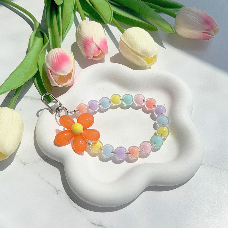꽃 라운드 구슬 교수형 체인 인터넷 연예인 작은 신선한 마카롱 색상 매칭 휴대 전화 교수형 체인 페르시 교수형 장식품 끈 액세서리