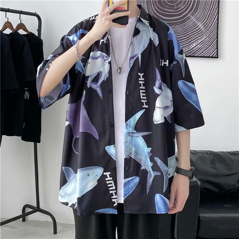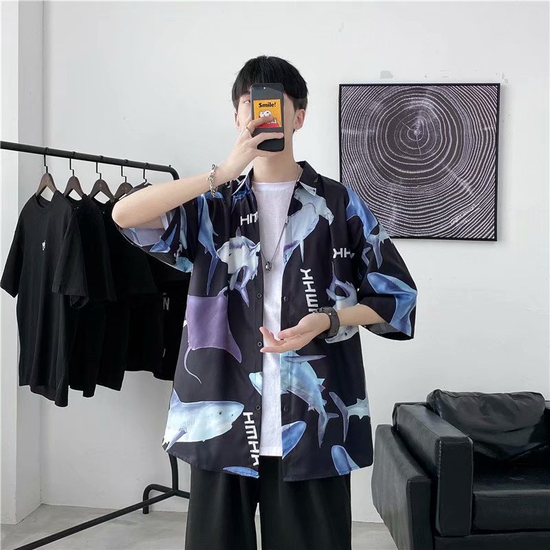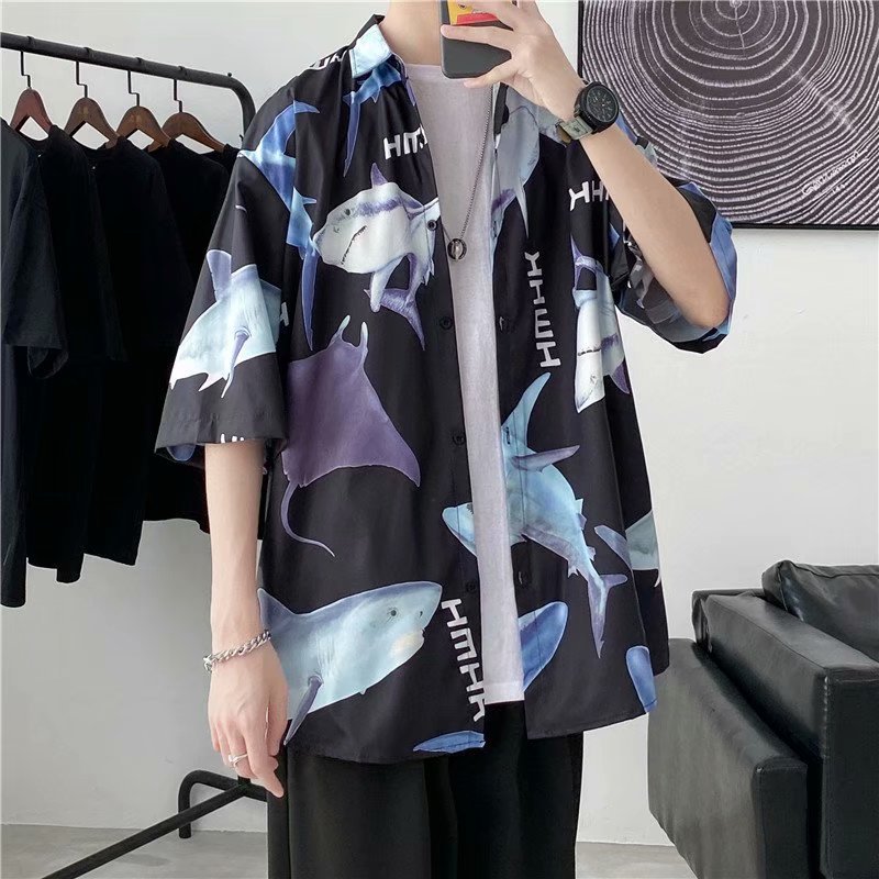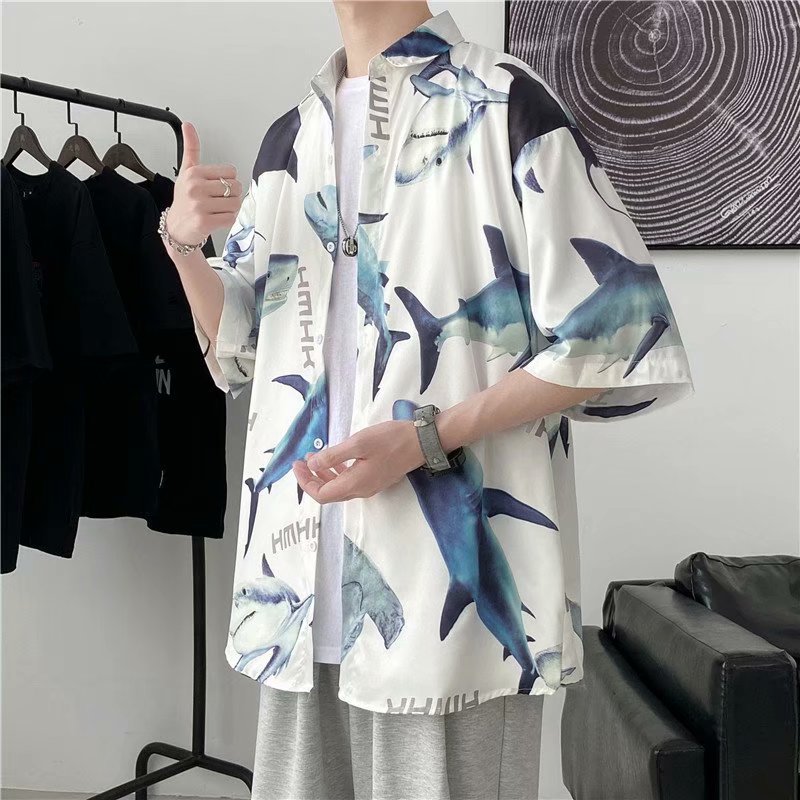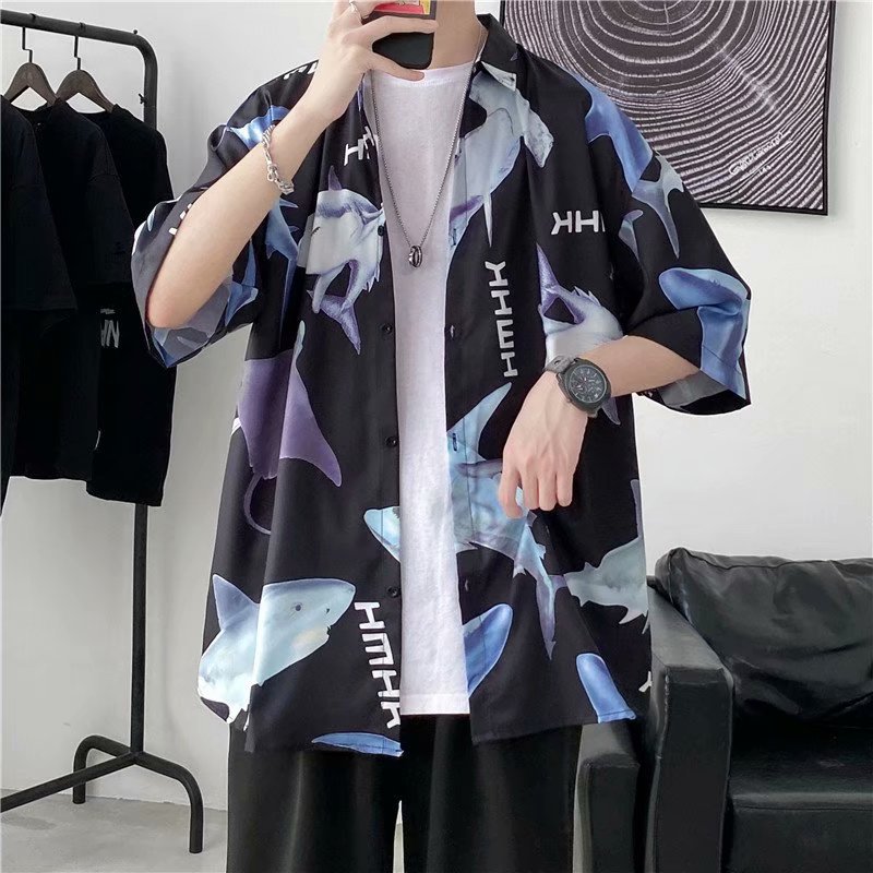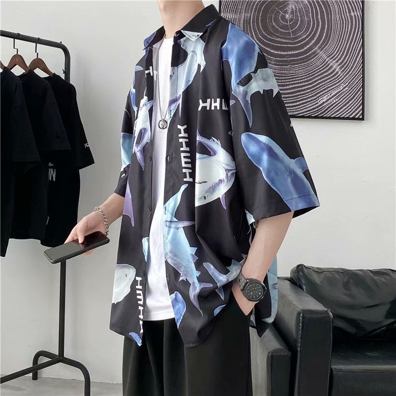 반팔 셔츠 남자의 게으른 스타일 Ruffian 잘 생긴 고급 in 홍콩 스타일 유행 디자인 감각 얇은 재킷 5 점 셔츠스토어 가기