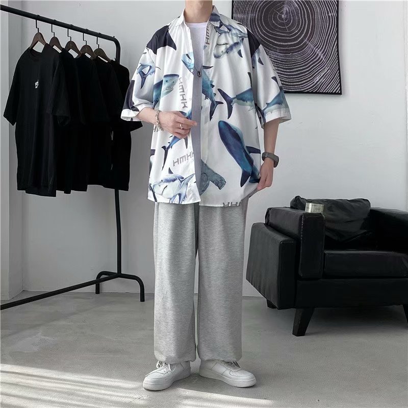 반팔 셔츠 남자의 게으른 스타일 Ruffian 잘 생긴 고급 in 홍콩 스타일 유행 디자인 감각 얇은 재킷 5 점 셔츠