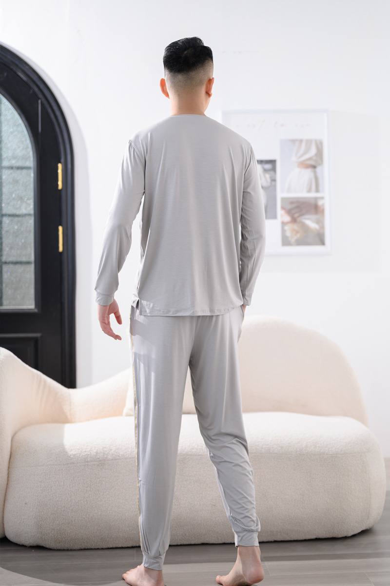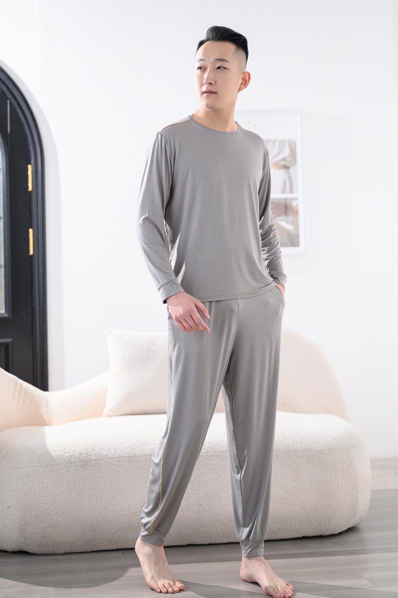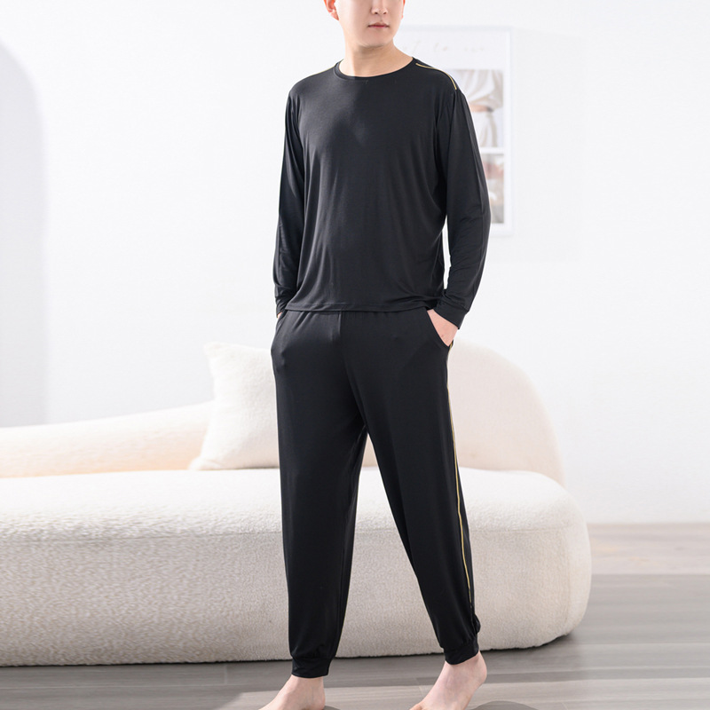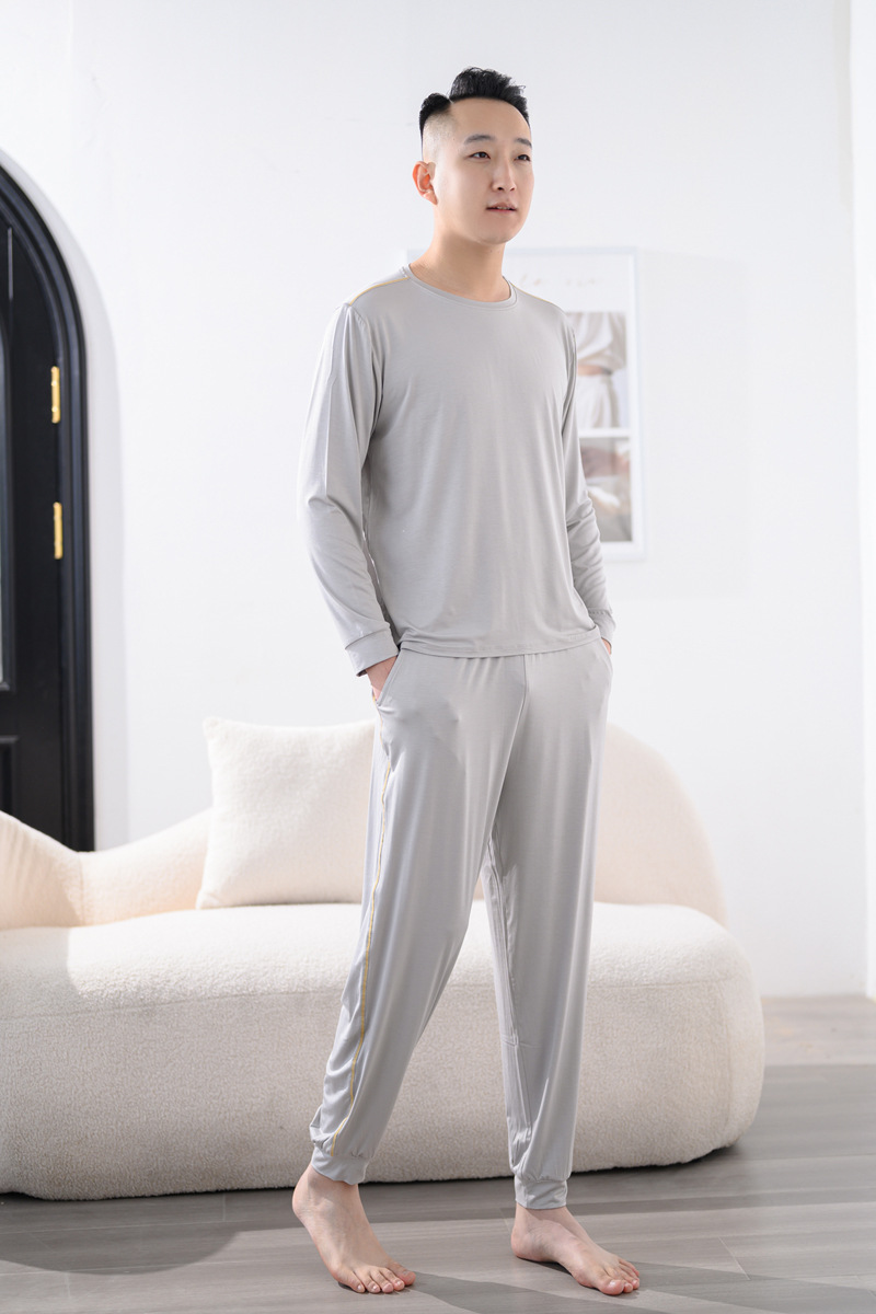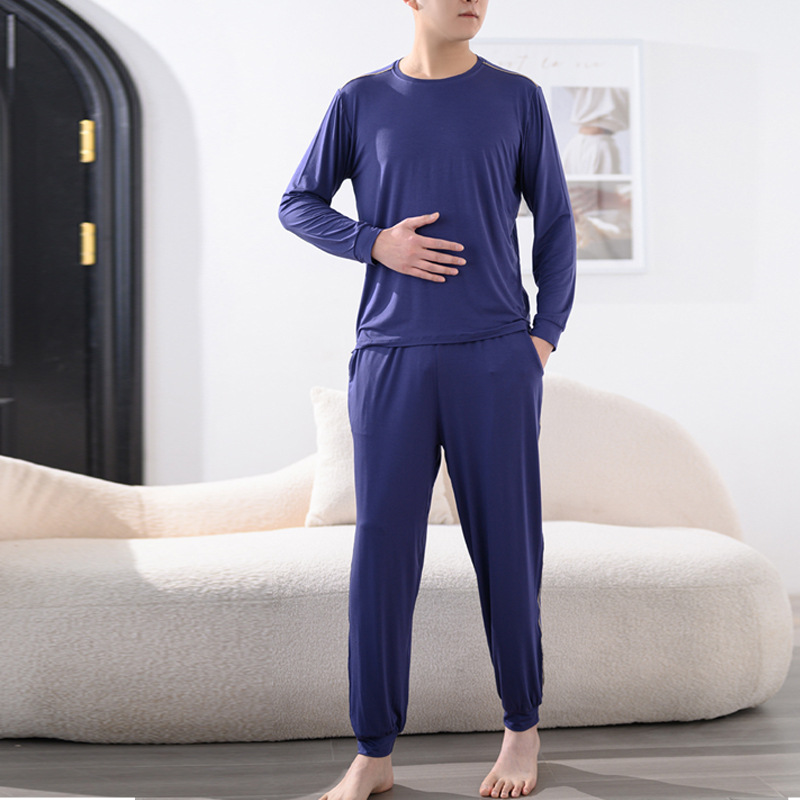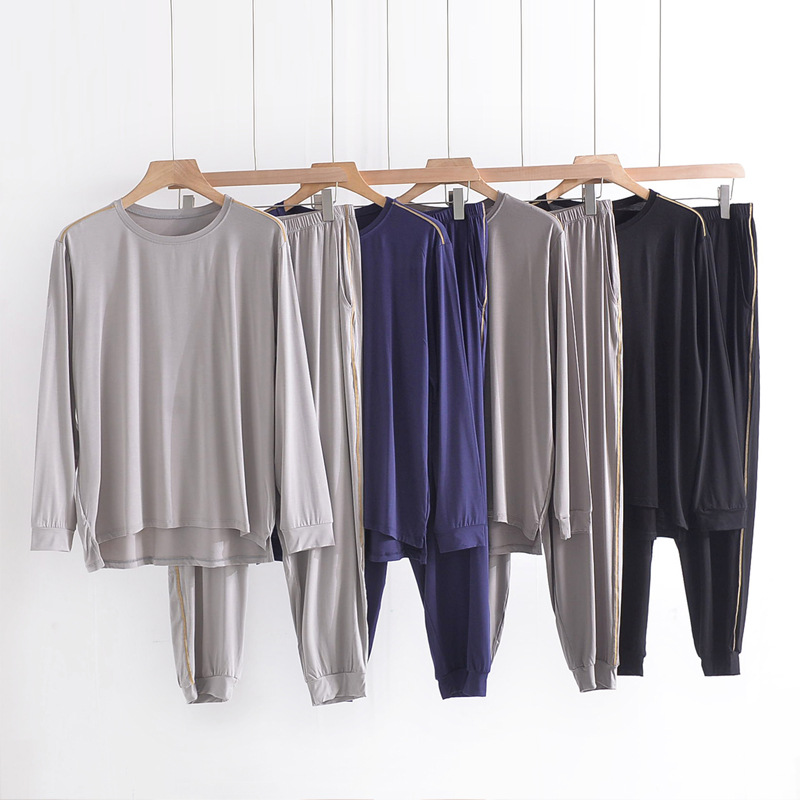 Youcan 실크 잠옷 세트 남자의 봄과 가을 긴 소매 바지 느슨한 플러스 사이즈 캐주얼 아웃웨어 가정 옷 여름