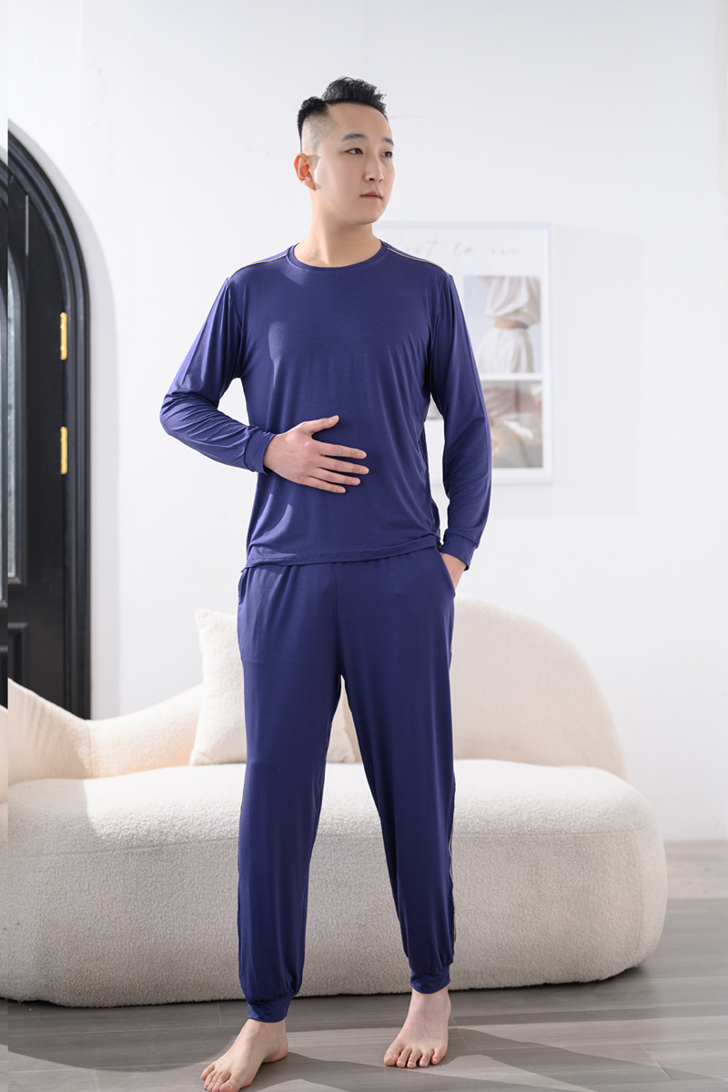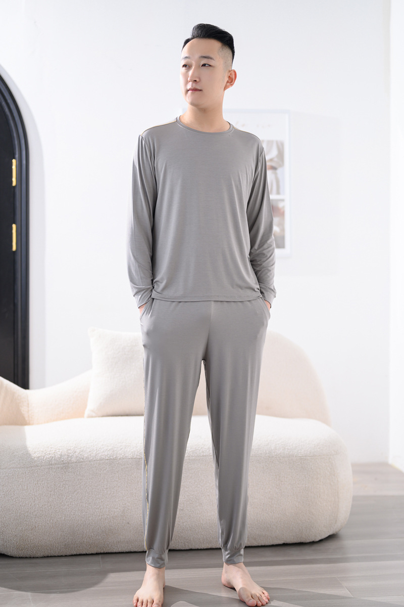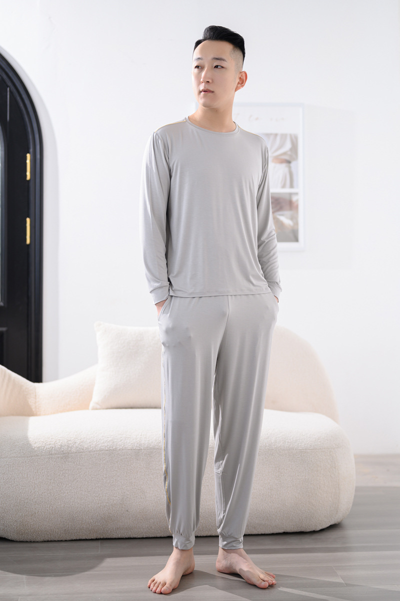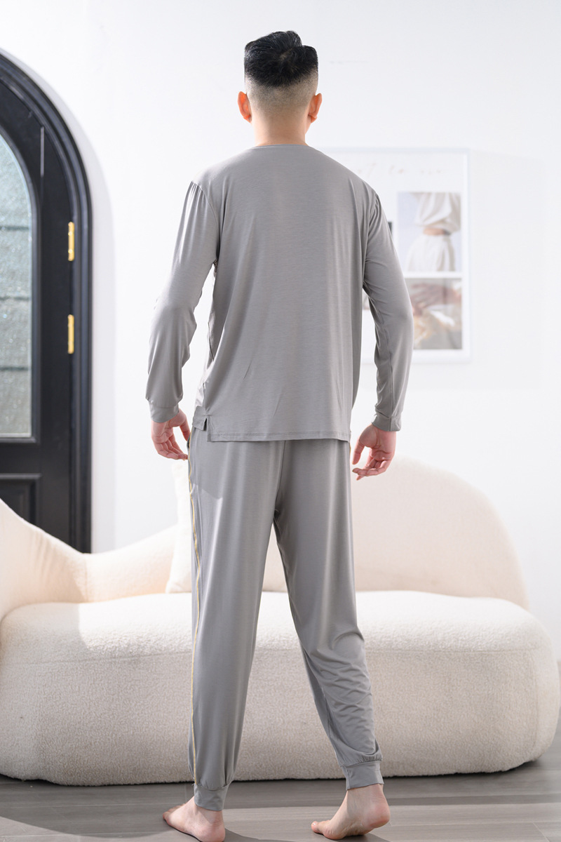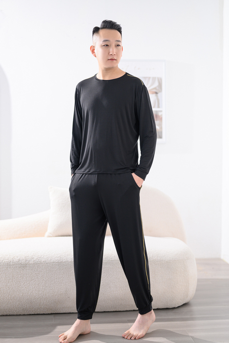 Youcan 실크 잠옷 세트 남자의 봄과 가을 긴 소매 바지 느슨한 플러스 사이즈 캐주얼 아웃웨어 가정 옷 여름