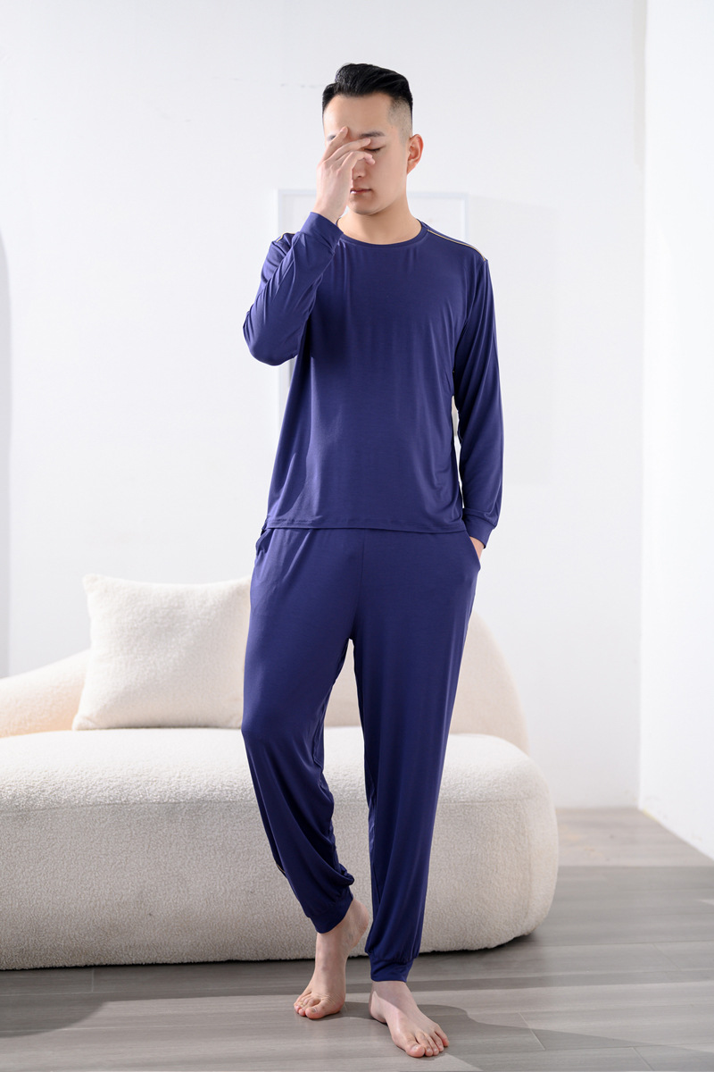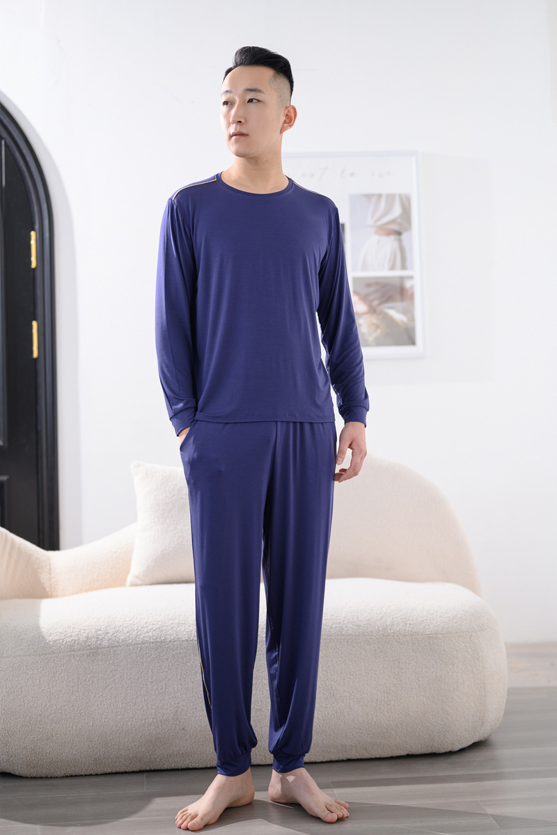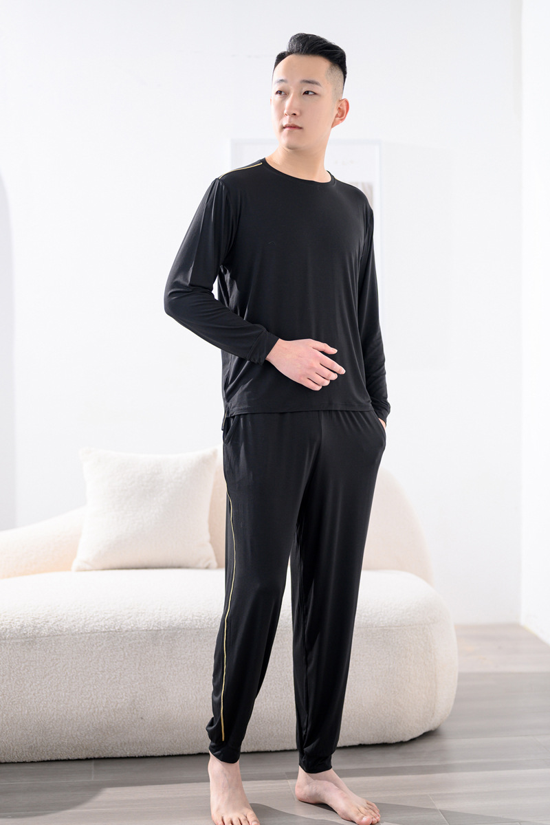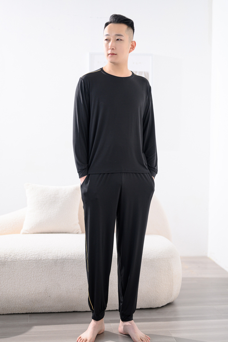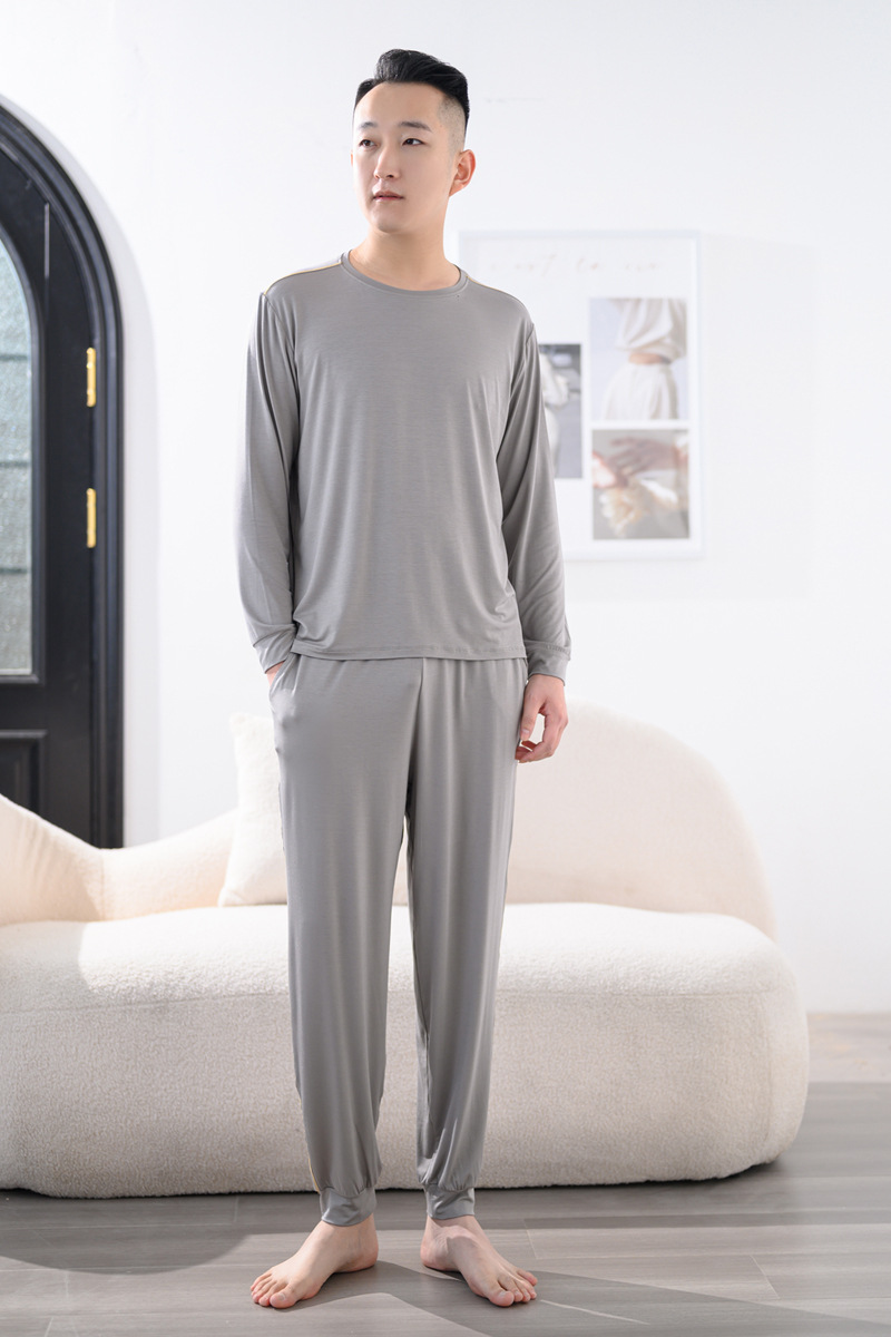 Youcan 실크 잠옷 세트 남자의 봄과 가을 긴 소매 바지 느슨한 플러스 사이즈 캐주얼 아웃웨어 가정 옷 여름