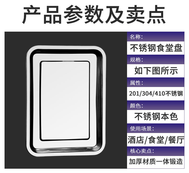 원산지 공장 스테인리스 스틸 찜밥 사각 접시, 구내식당, 케이터링, 패스트푸드용 스테인리스 스틸 식기, 트레이, 깊은 접시 도매스토어 가기