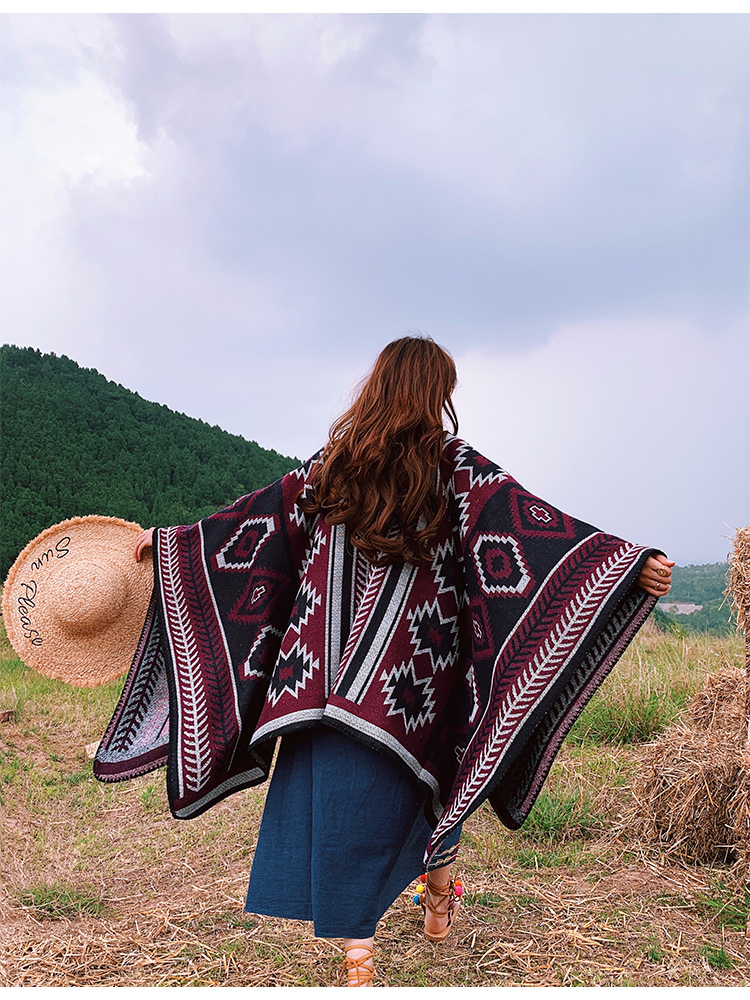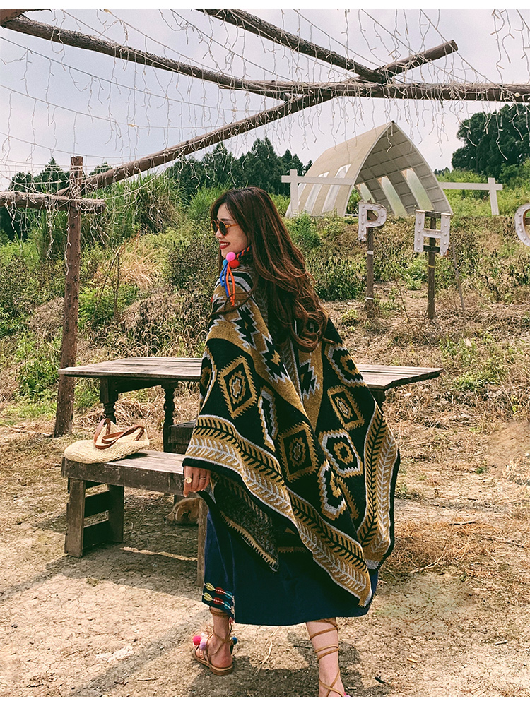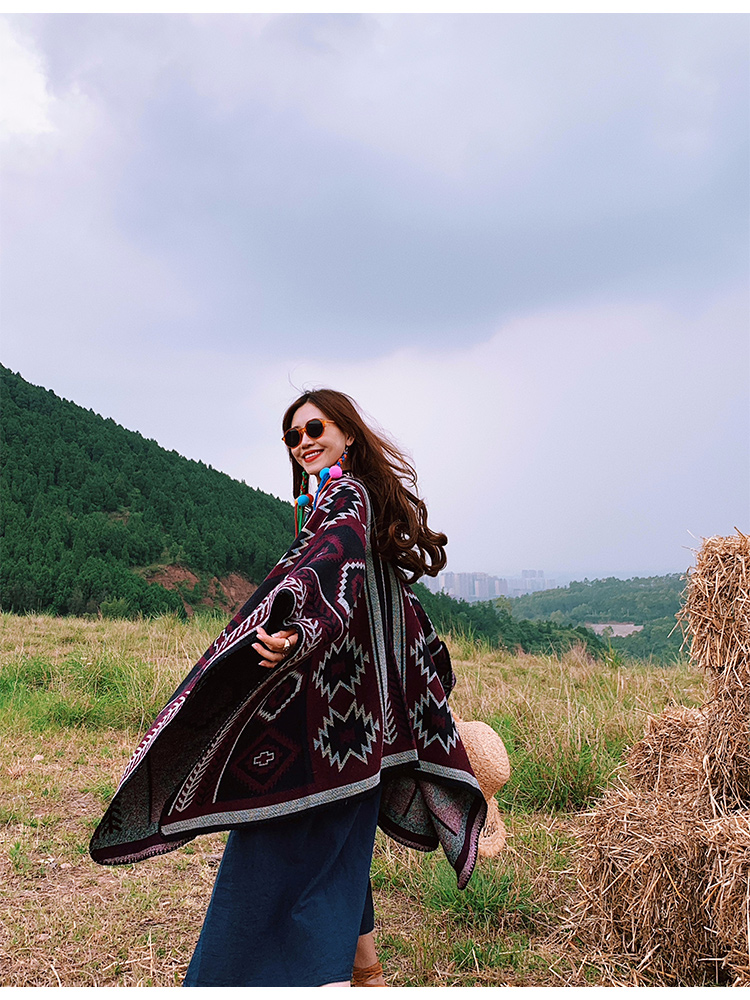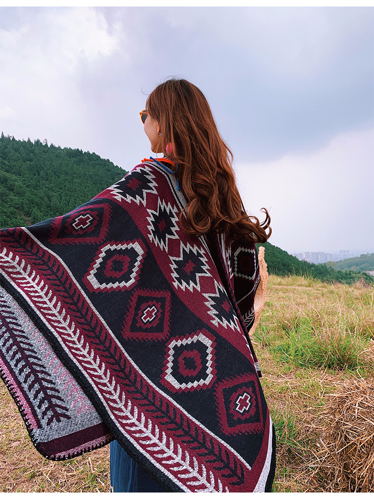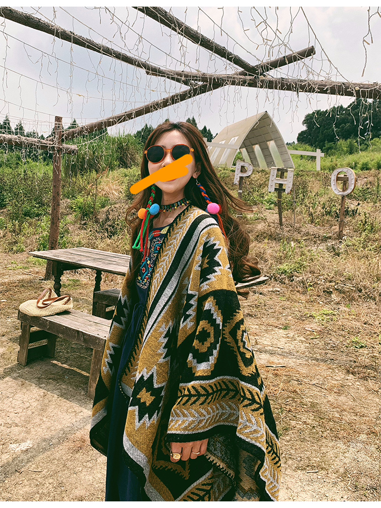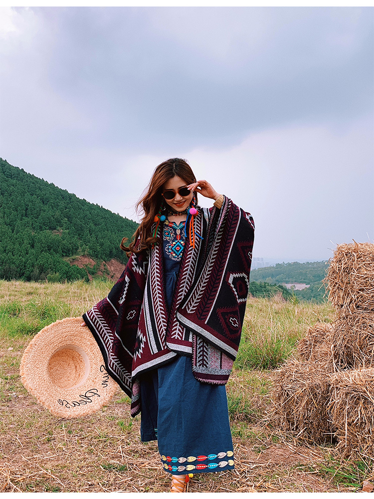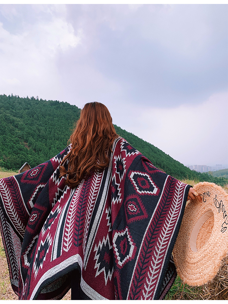 기하학 민족 숄 북서 대초원 착용 여행 보헤미안 망토 가을과 겨울 아마존 AliExpress