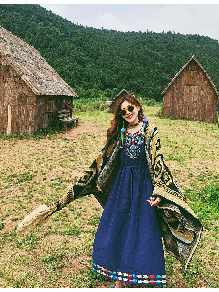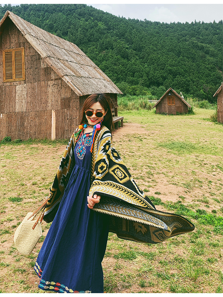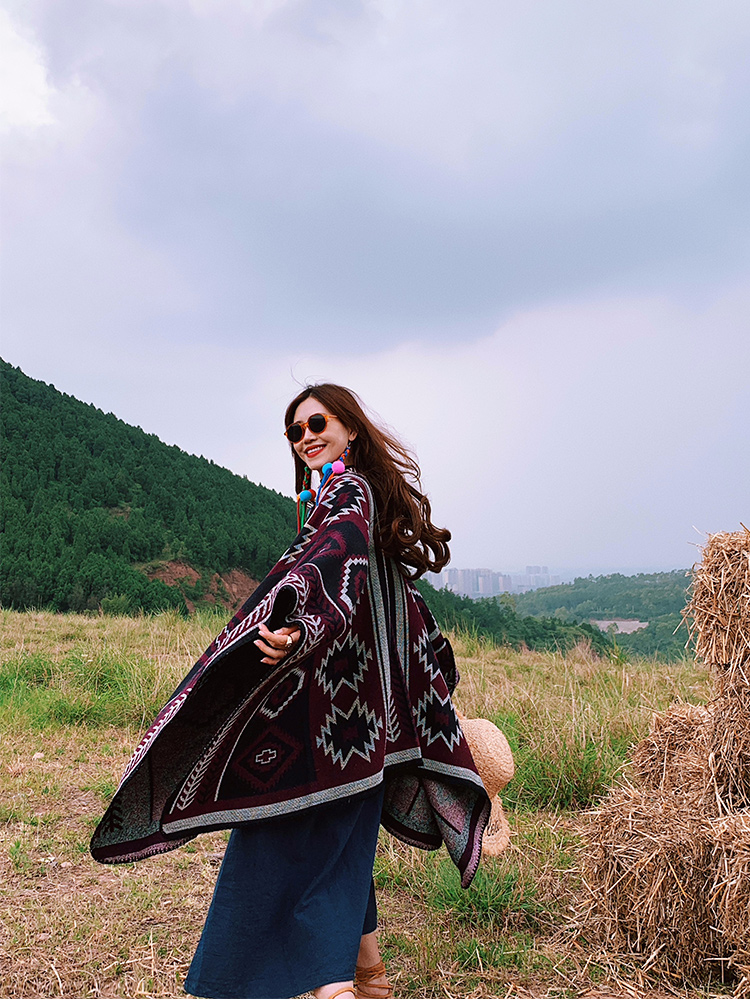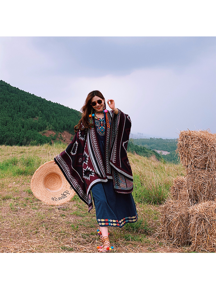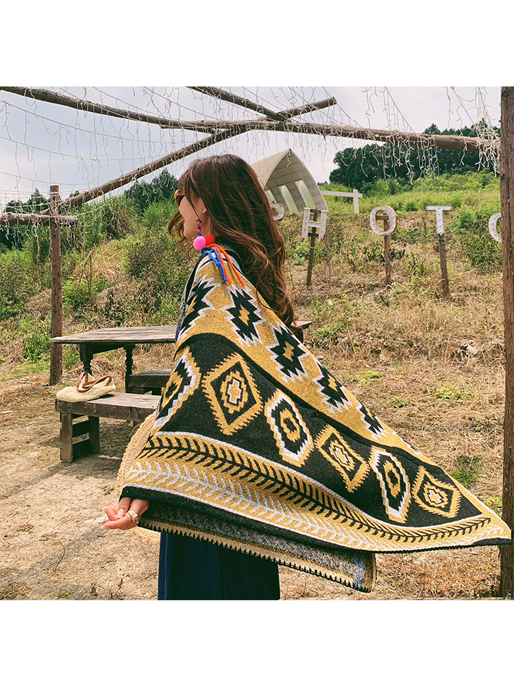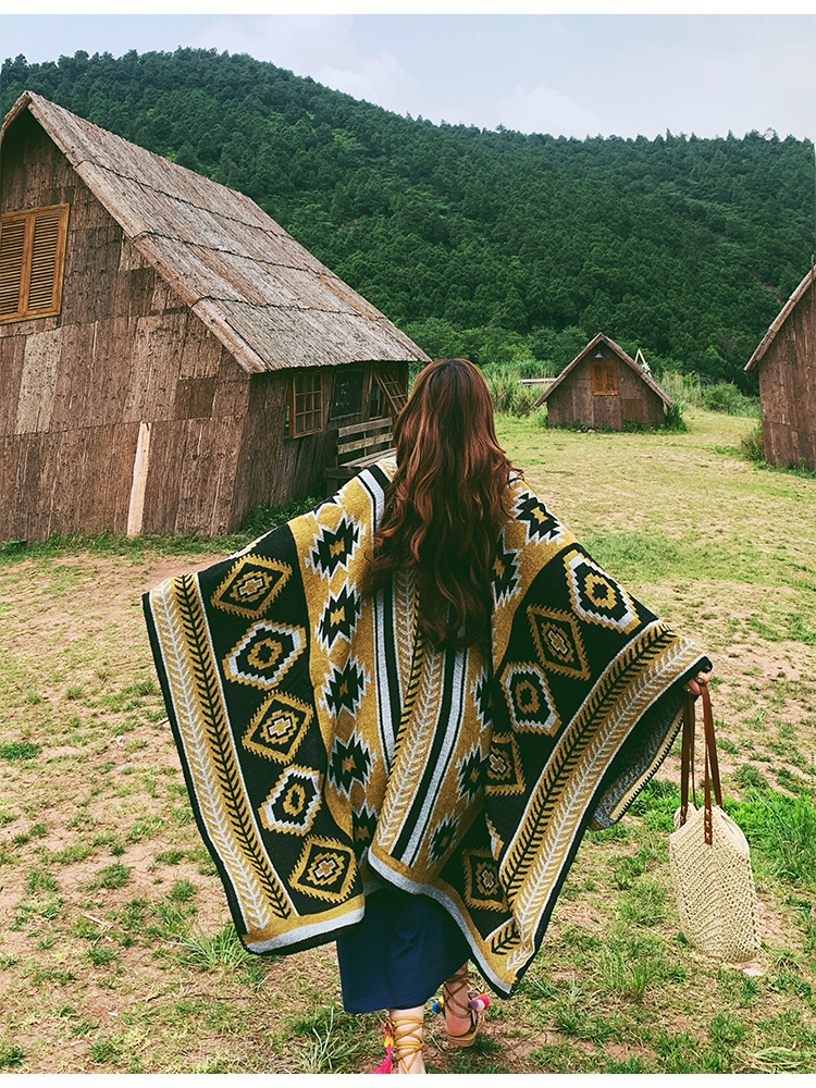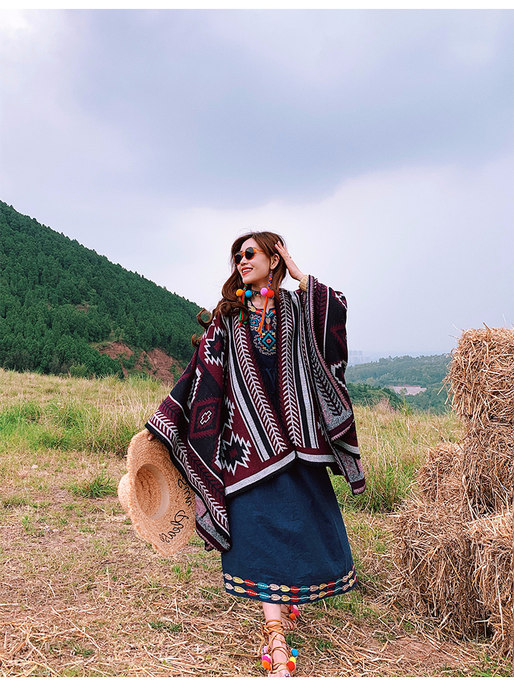 기하학 민족 숄 북서 대초원 착용 여행 보헤미안 망토 가을과 겨울 아마존 AliExpress