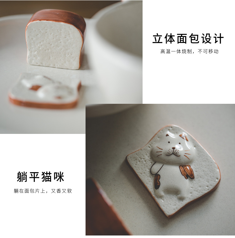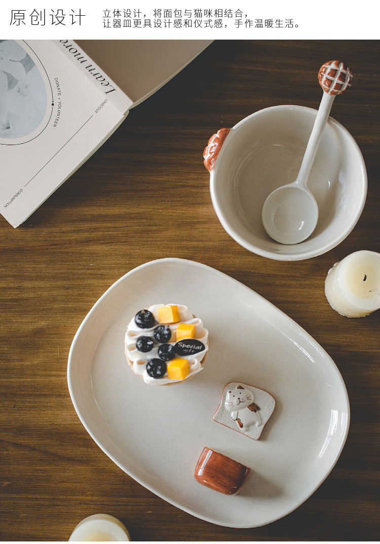 Jingdezhen 창조적 인 수제 식기 빵 고양이 케이크 접시 문학 만화 가정 아침 식사 그릇 개인 선물스토어 가기