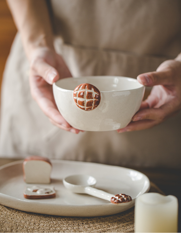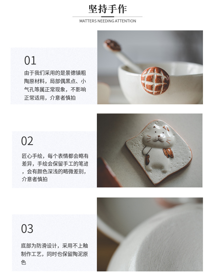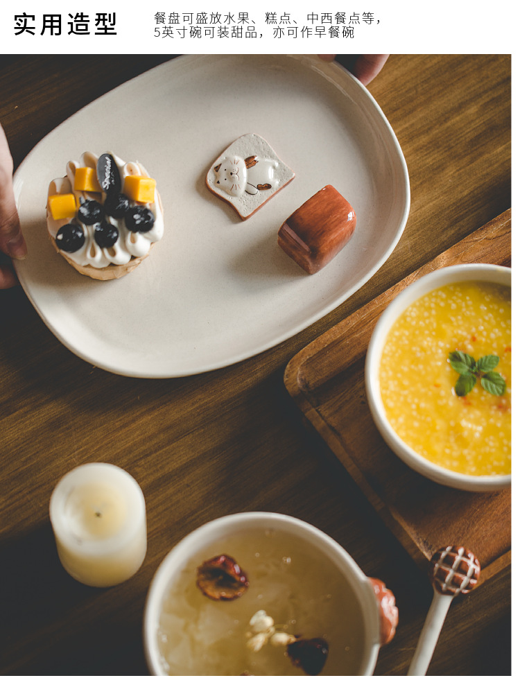 Jingdezhen 창조적 인 수제 식기 빵 고양이 케이크 접시 문학 만화 가정 아침 식사 그릇 개인 선물