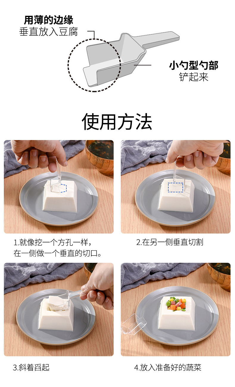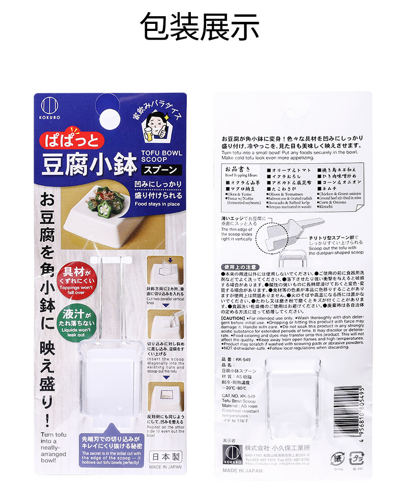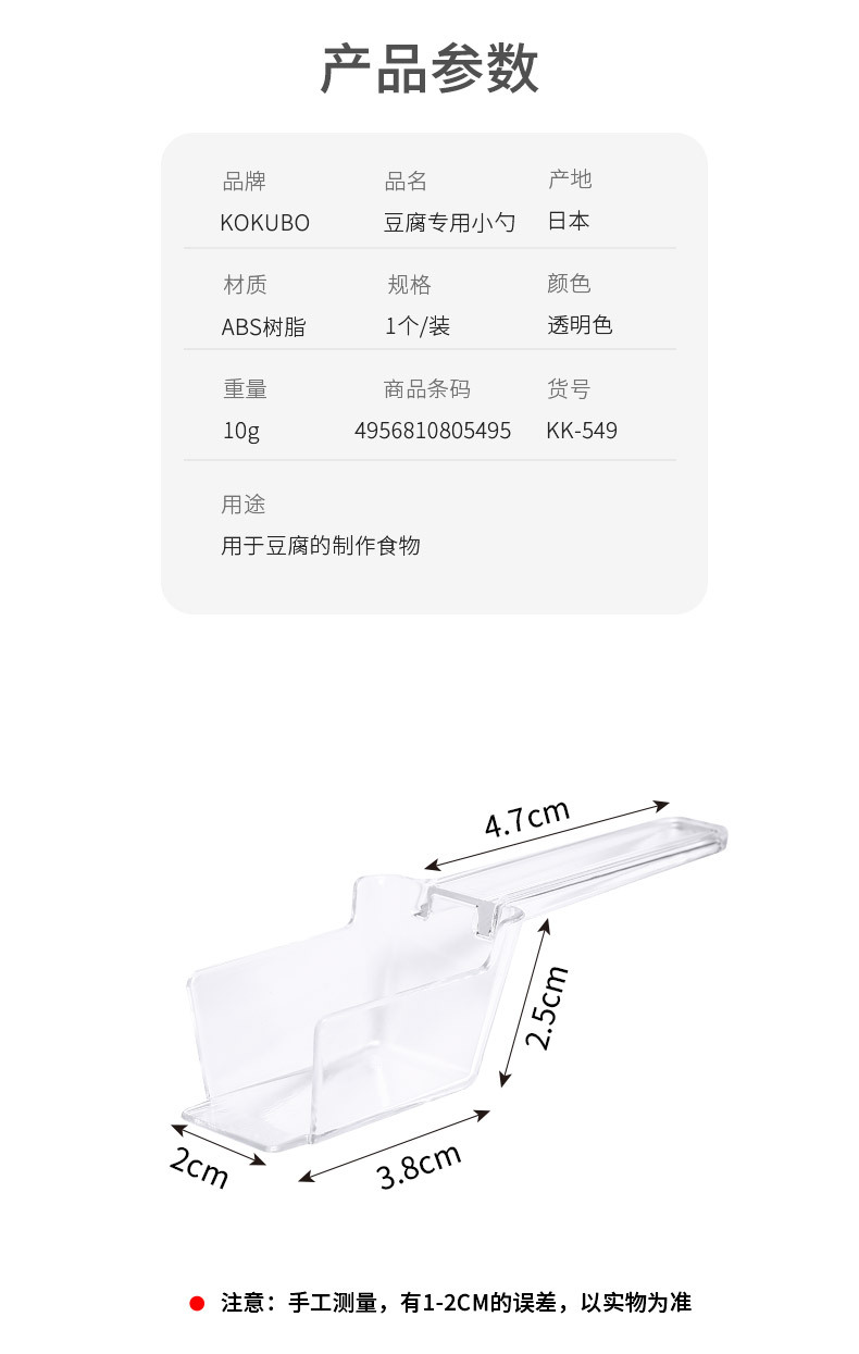 KOKUBO 일본 두부 굴착 두부 플라스틱 긴 손잡이 작은 스푼 가정용 굴착 사각 구멍 작은 스푼 주방 용품 도매스토어 가기