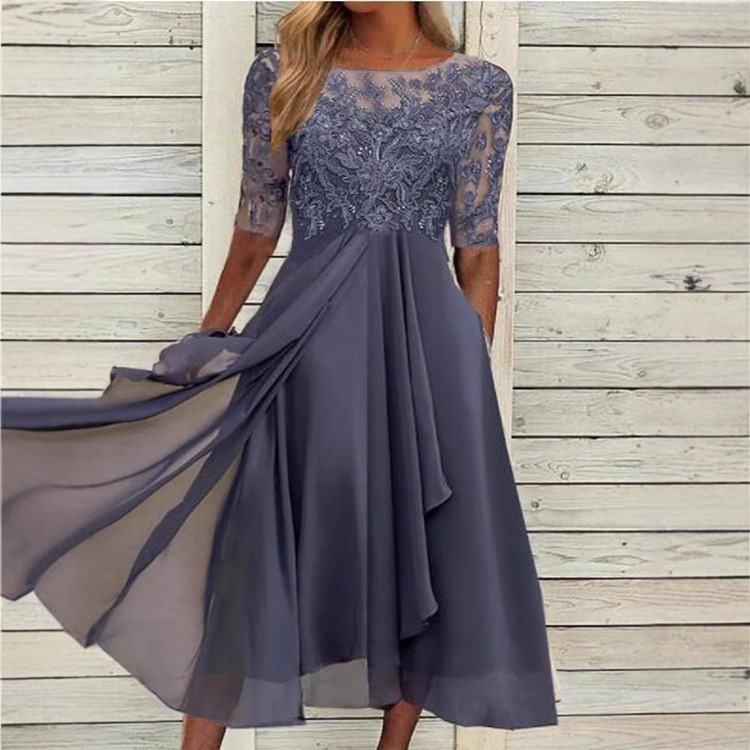유럽과 미국 대외 무역 여성의 봄과 여름 들러리 저녁 원피스 레이스 슬리브 중공 쉬폰 원피스스토어 가기