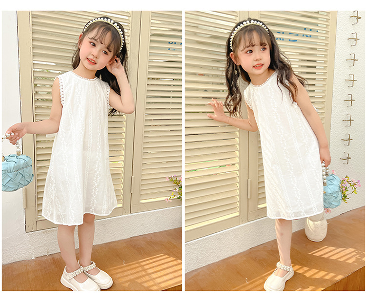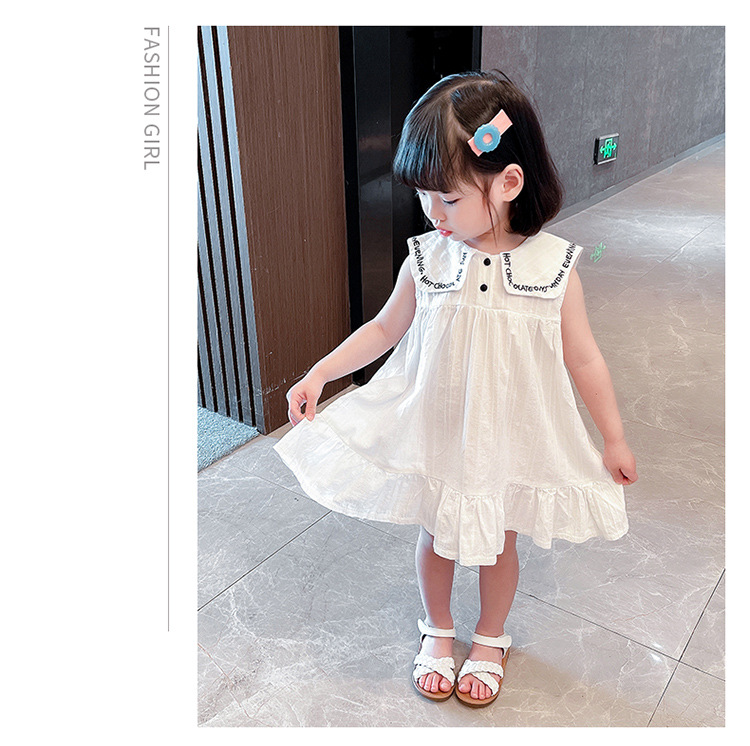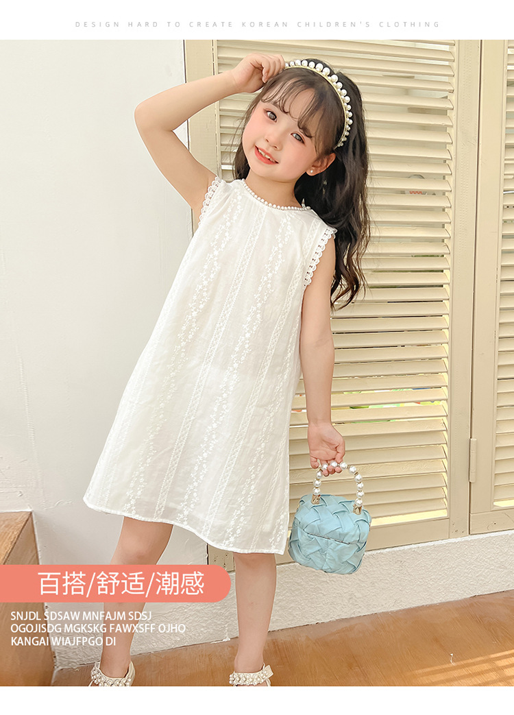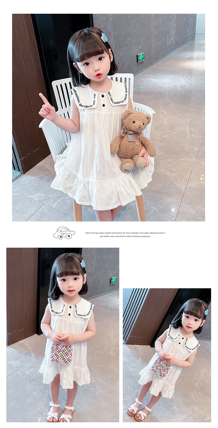 여아 드레스 순면 안감 면 흰색 스커트 여아 2025 패션 진주 칼라 민소매 조끼 스커트스토어 가기