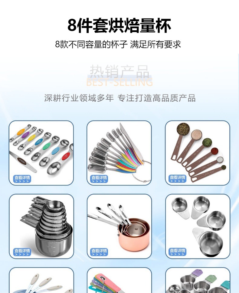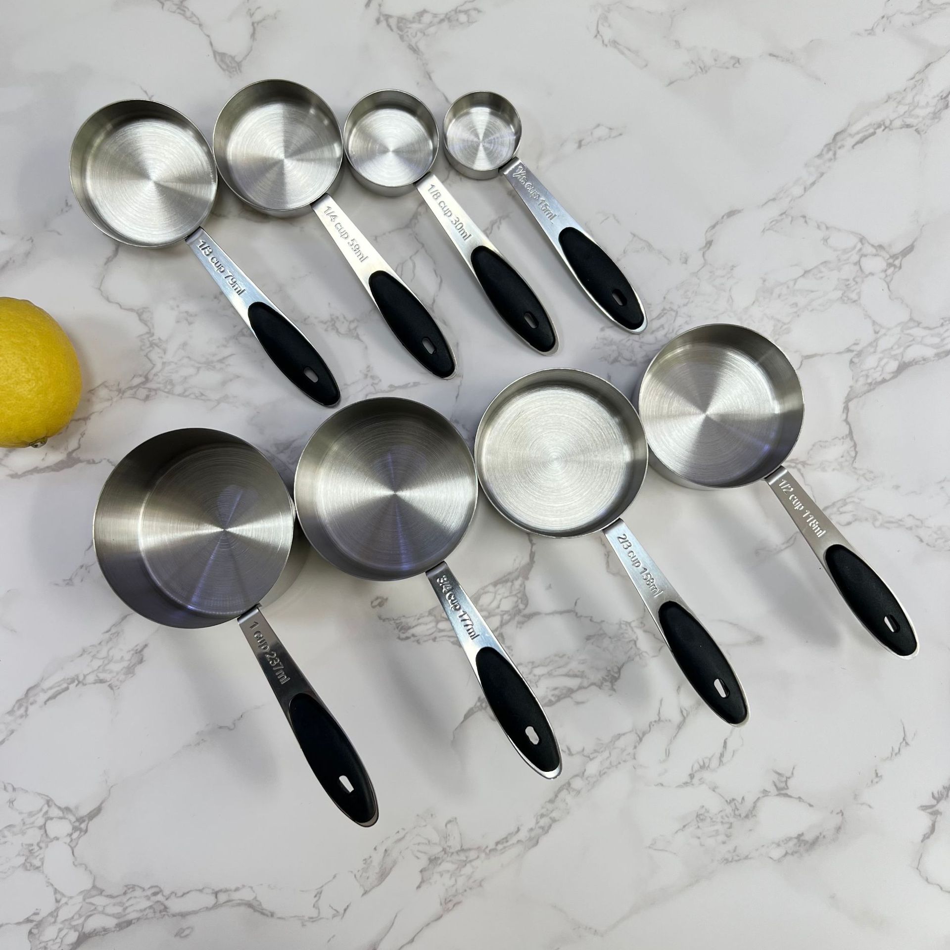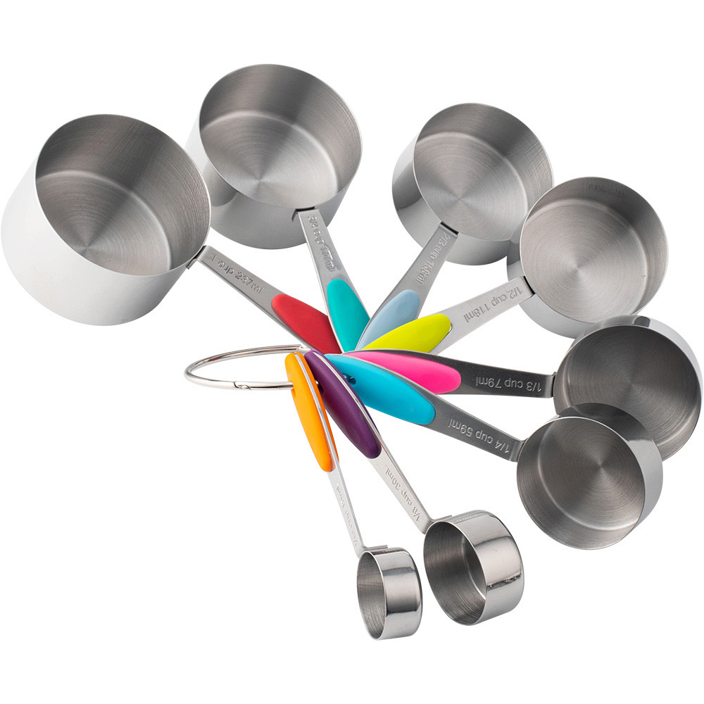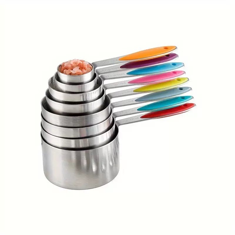 아마존 실리콘 핸드 패드 스테인레스 스틸 측정 컵 8 개 세트 스케일 측정 컵 측정 스푼 세트 커피 베이킹 도구