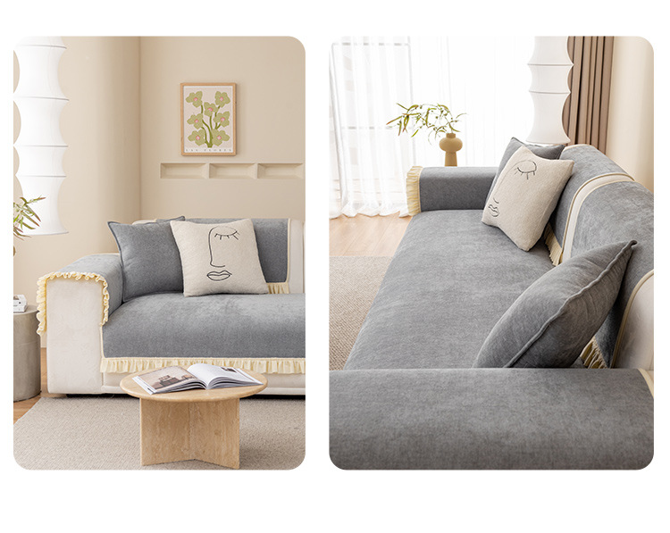 패브릭 소파 쿠션 커버 논슬립 백 타올 쿠션 사계절 유니버설 셔닐 일본식 및 한국식 단색 커버 거실 용 천스토어 가기