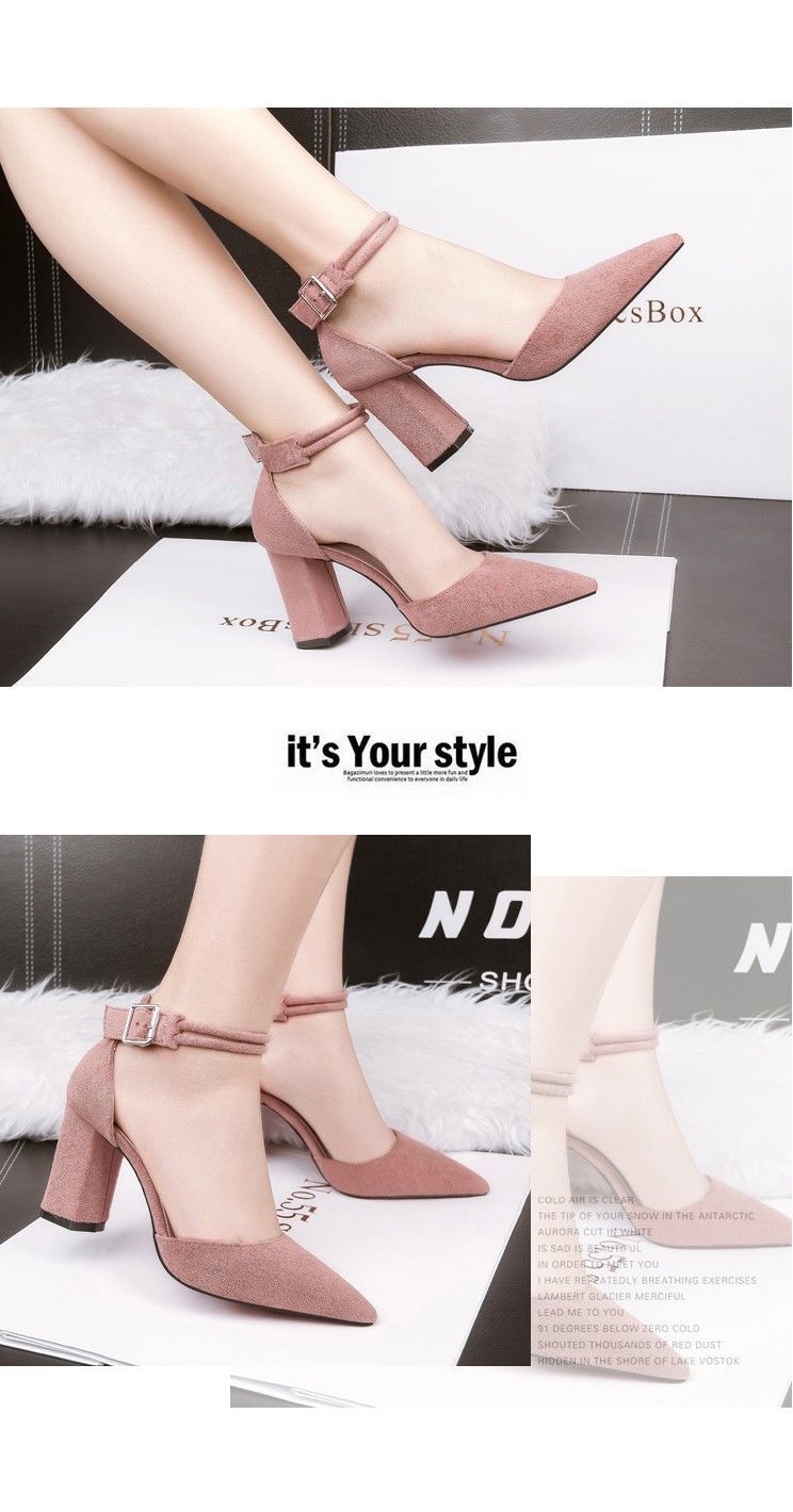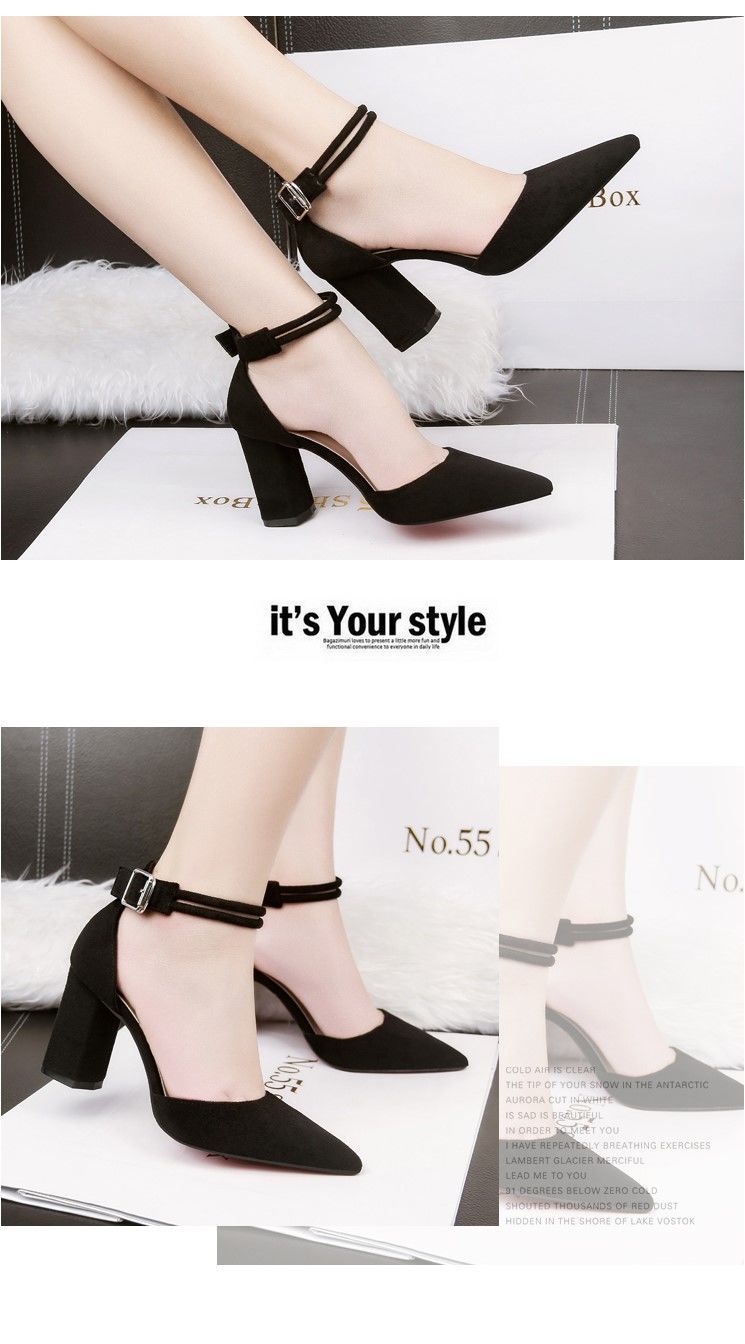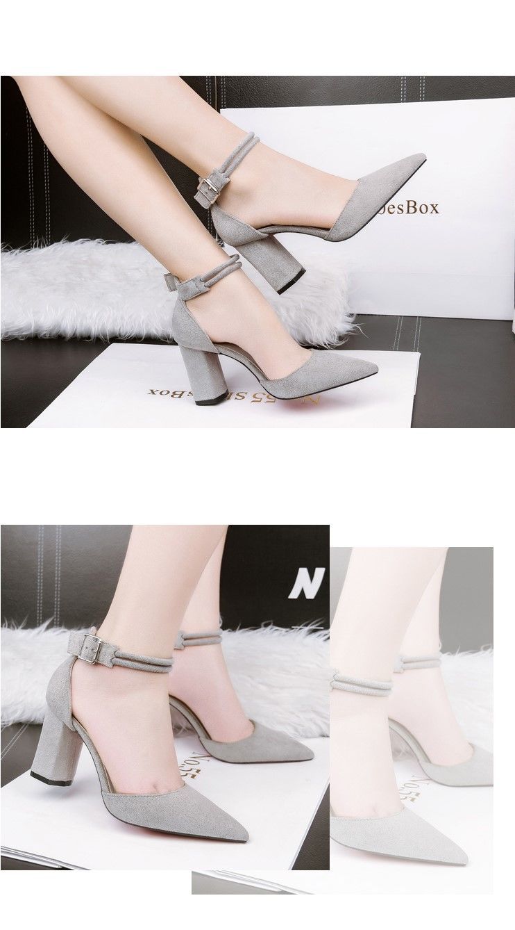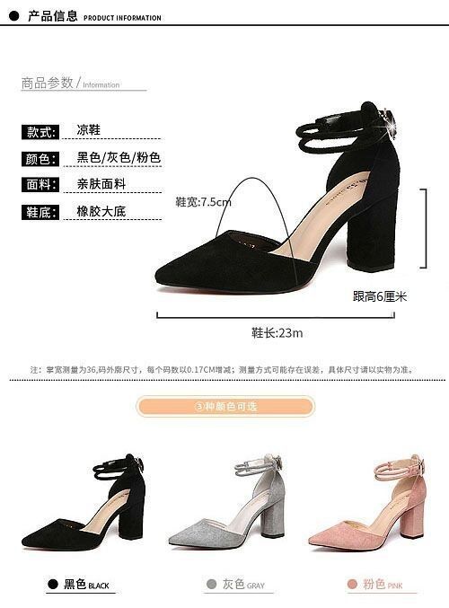 2023 년 봄과 여름을위한 한 글자 하이힐 새로운 패션 버클 뾰족한 발가락 여성 샌들 한국식 여성 신발 조수스토어 가기