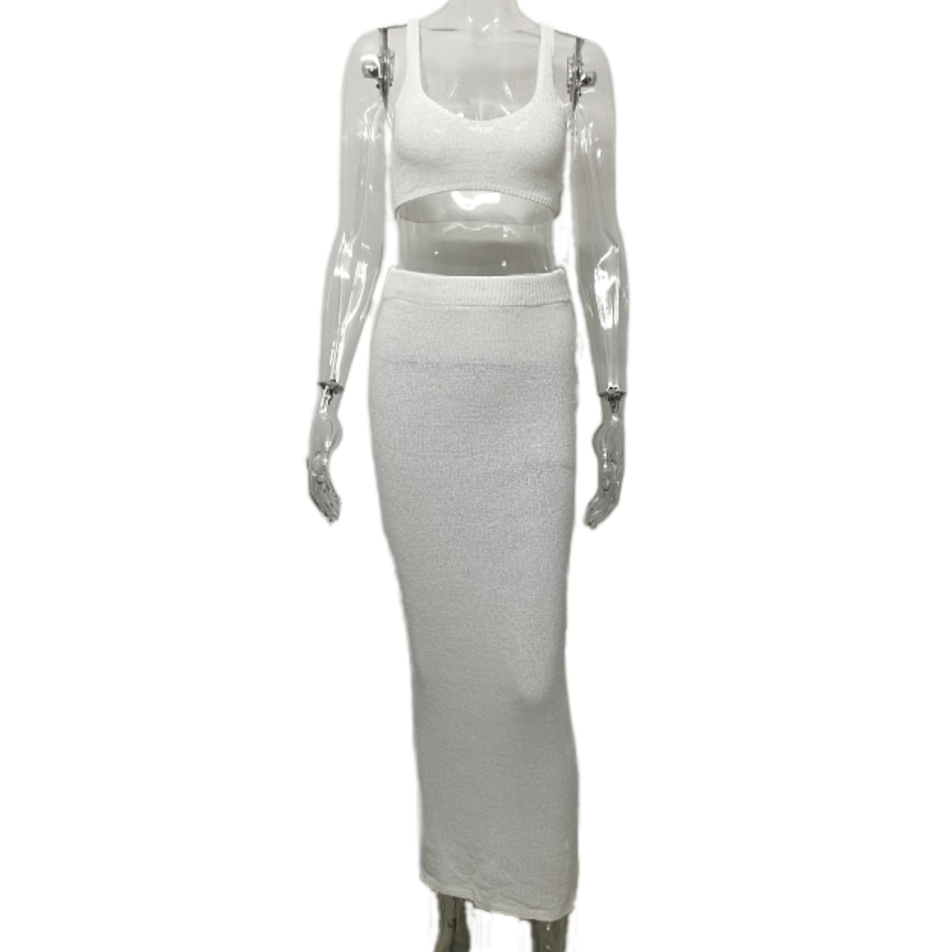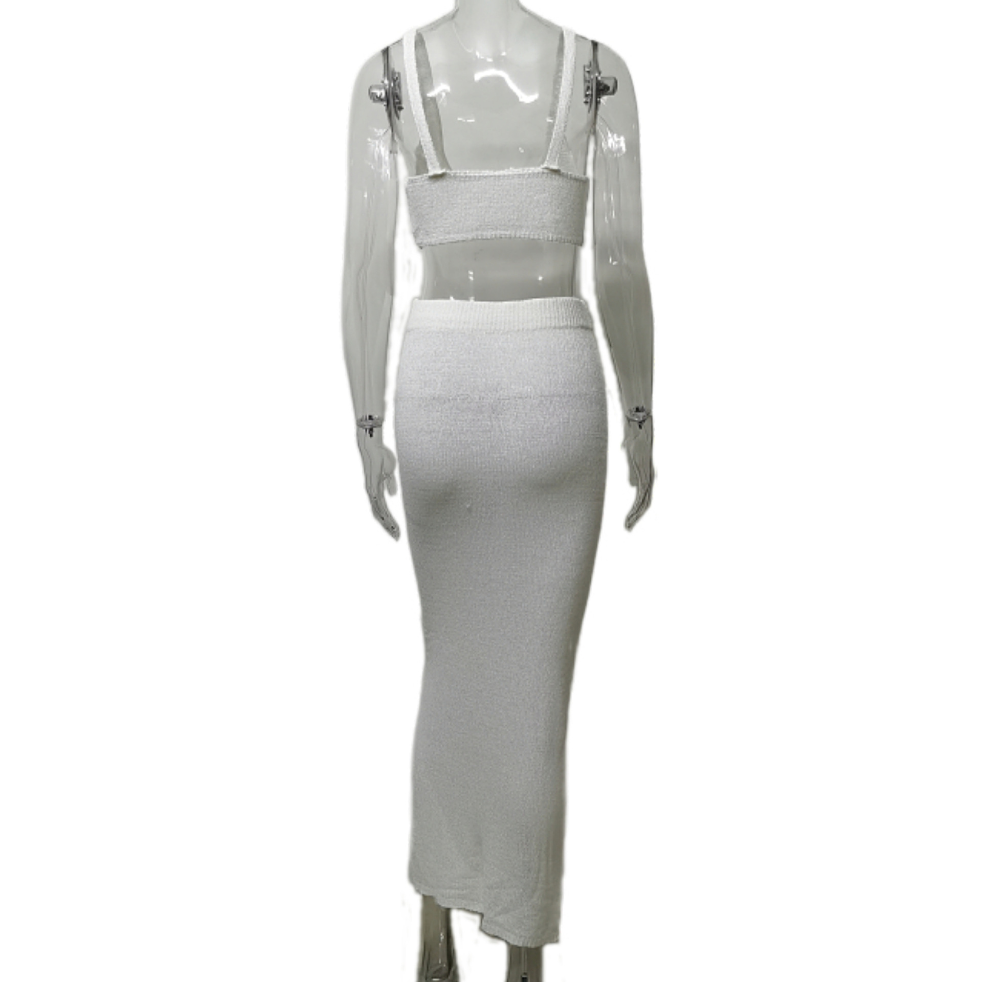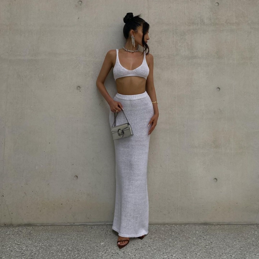 2026 유럽 및 미국 신상 핫걸 니트 패션 세트 여성용 멜빵탑 솔리드 컬러 힙허깅 롱스커트 투피스 세트