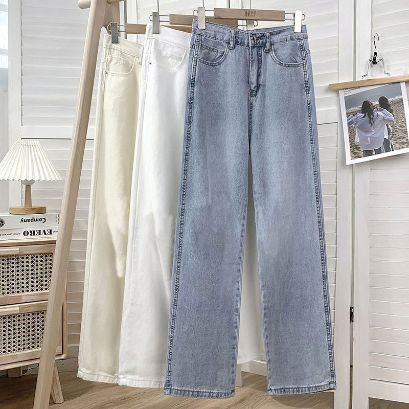 배 모양의 와이드 레그 청바지 여성용 봄 2023 새로운 여성복 짧은 스트레이트 느슨한 키가 큰 바닥 바지스토어 가기