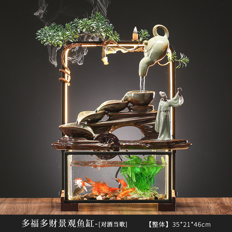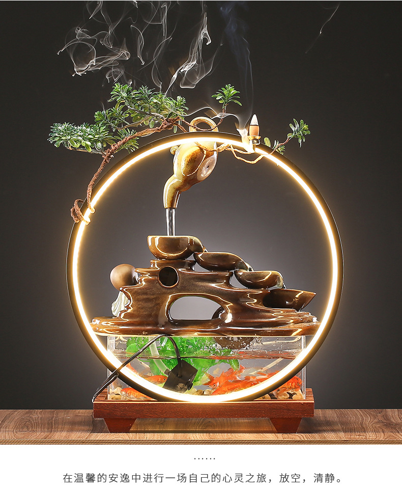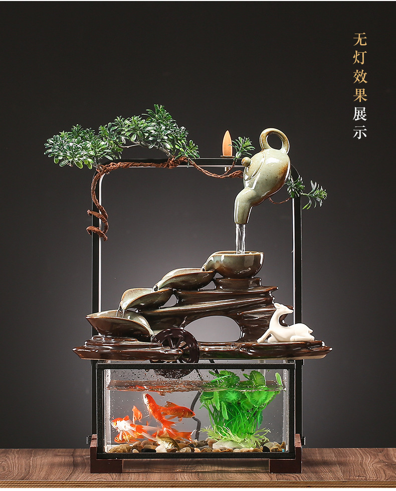 창조적 인 교수형 냄비 인테리어 장식 공예 물 분수 징광 봄 어항 풍수 장식품 새로운 거주지 개업 선물스토어 가기