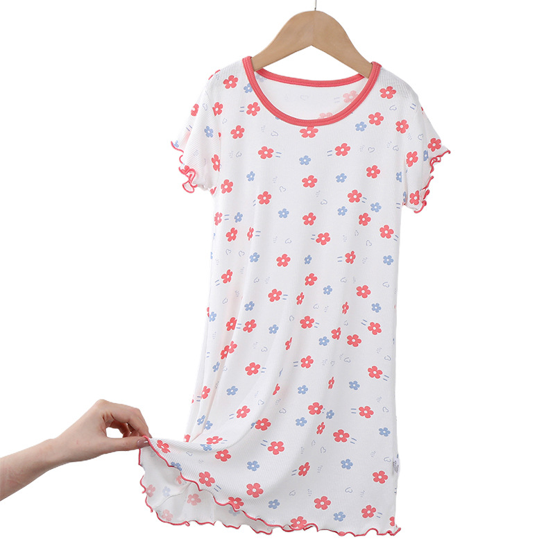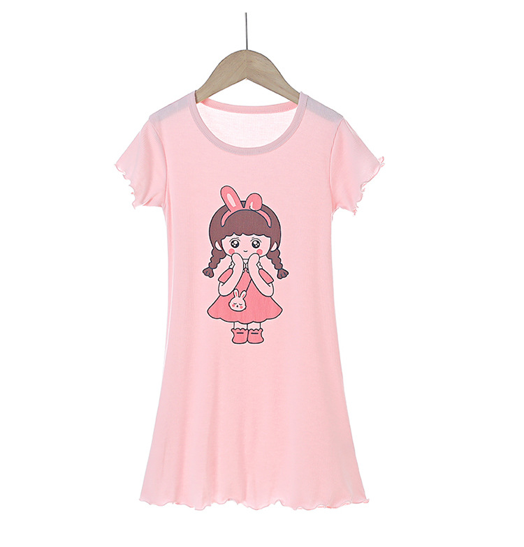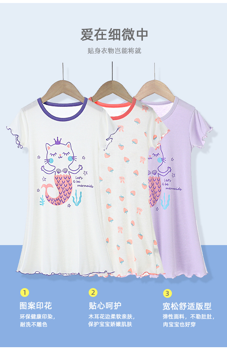 Modal 얇은 여름 여아 반팔 홈 원피스 어린이 에어컨 의류 큰 어린이 잠옷 어린 소녀 가정 의류스토어 가기