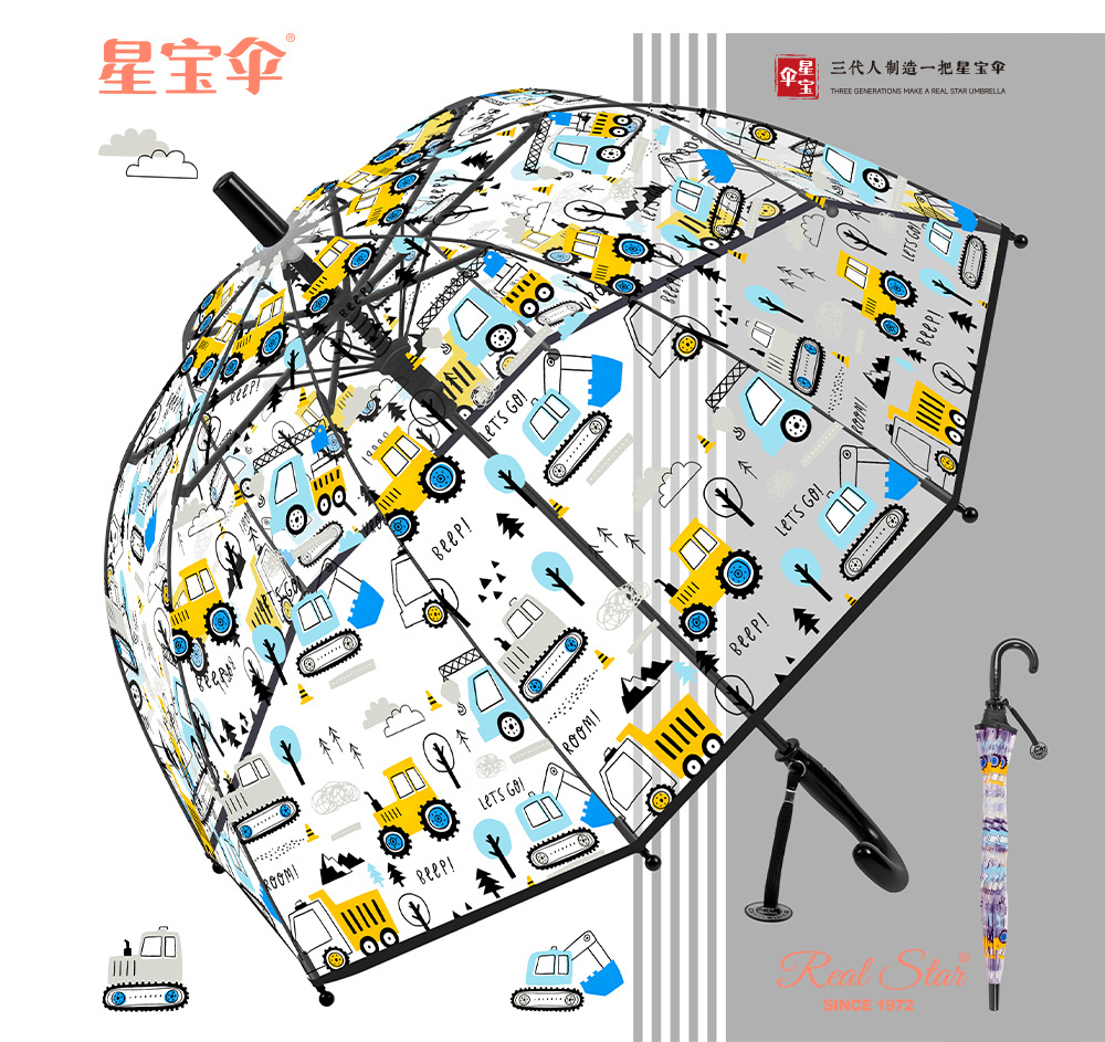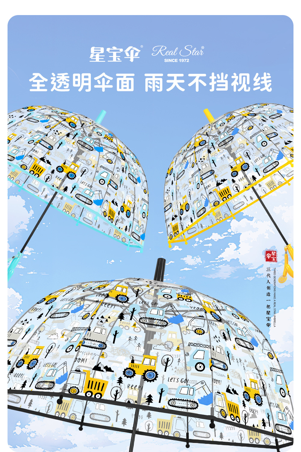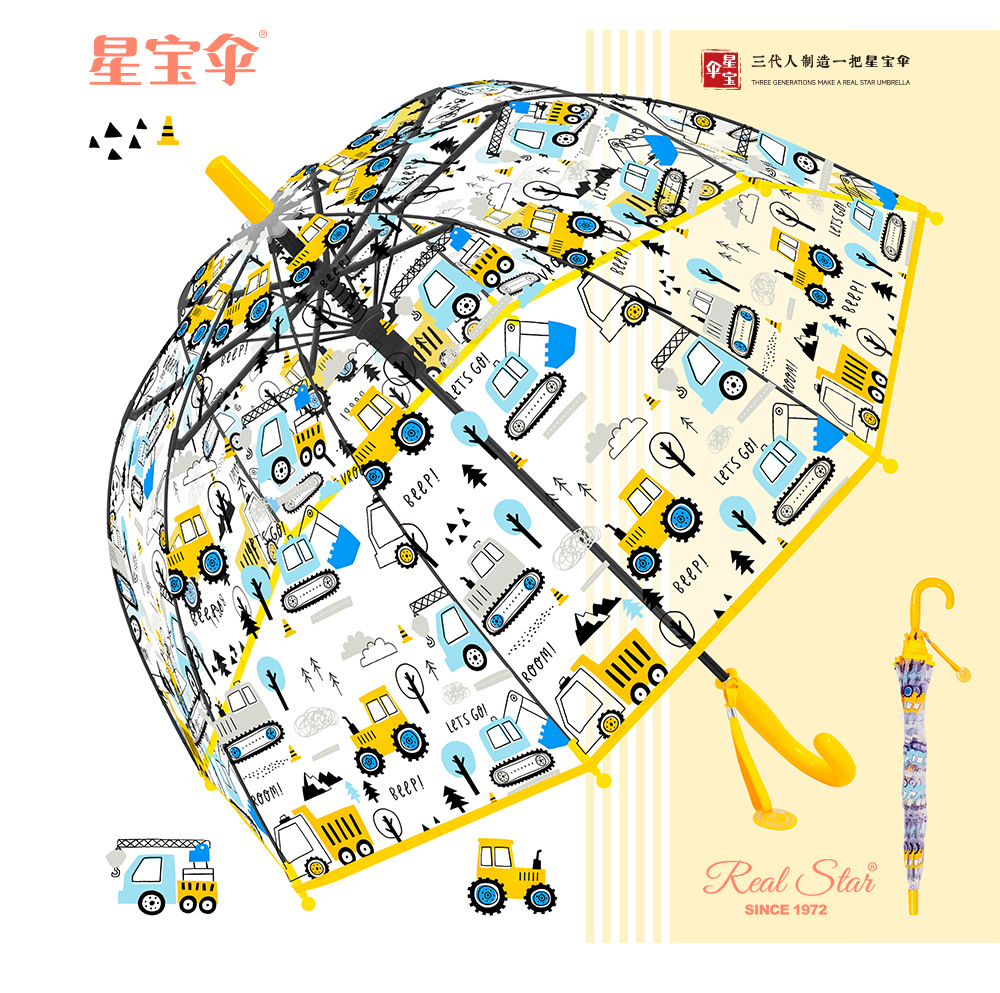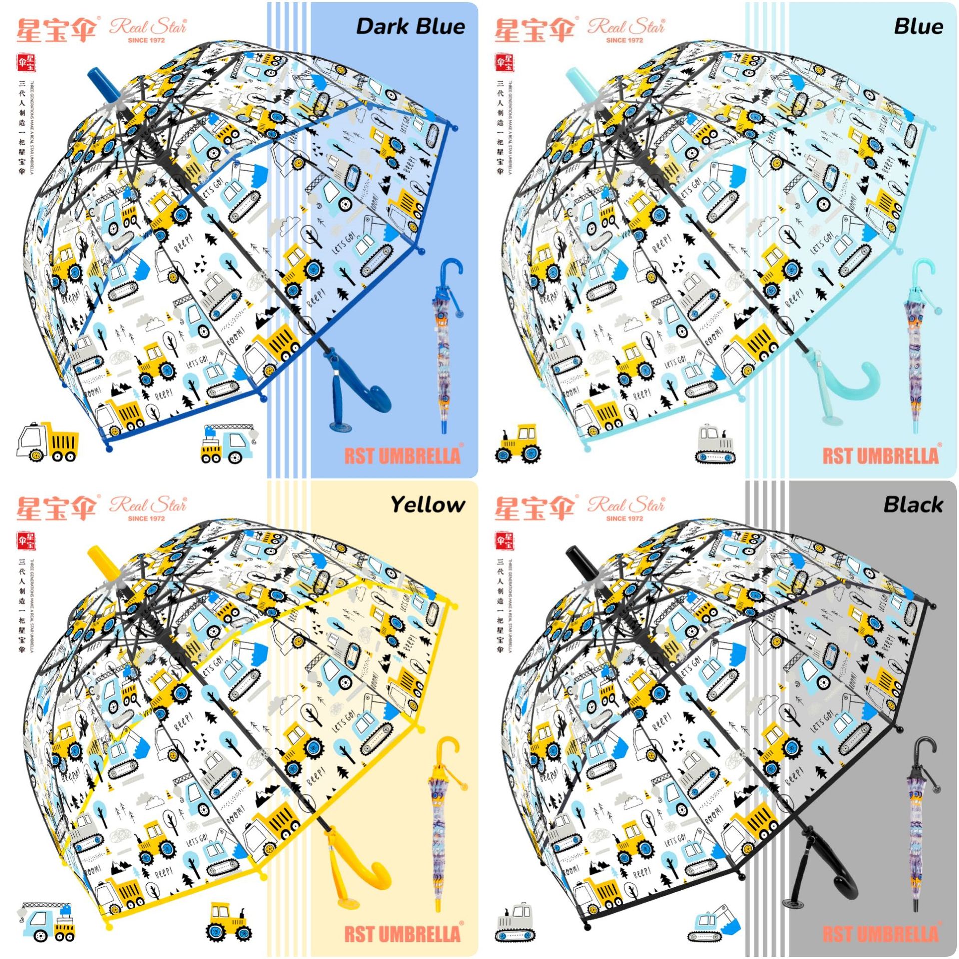 [크로스-국경 새 어린이 우산 귀여운 만화 POE 투명 우산 굴착기 불도저 패턴 자동 우산 재고스토어 가기