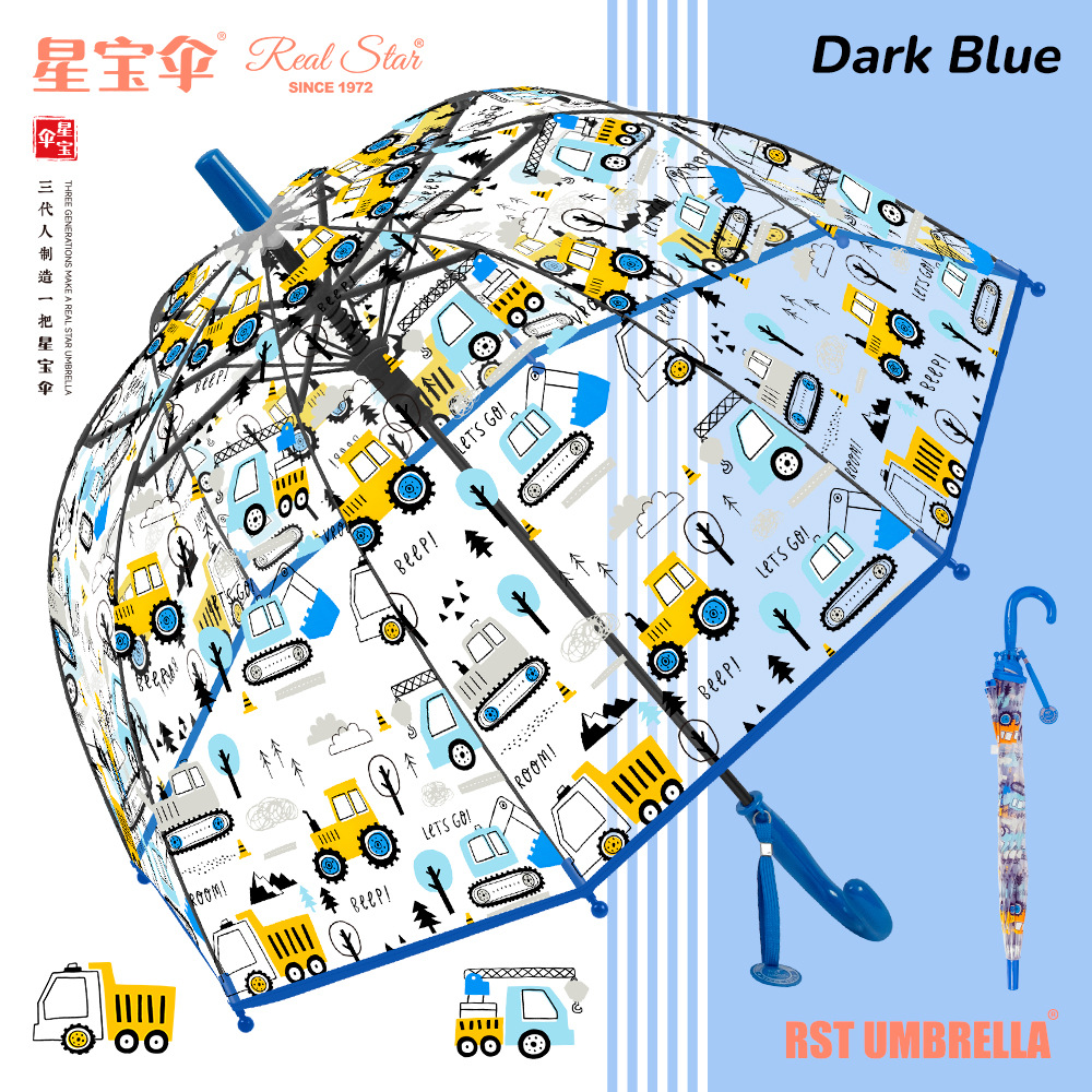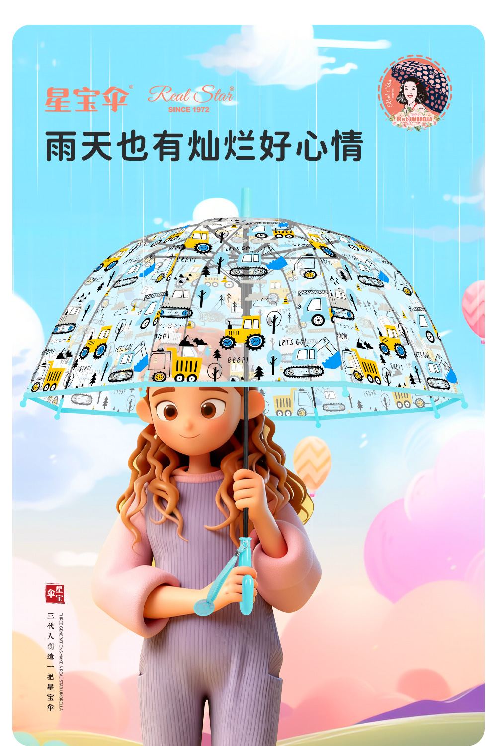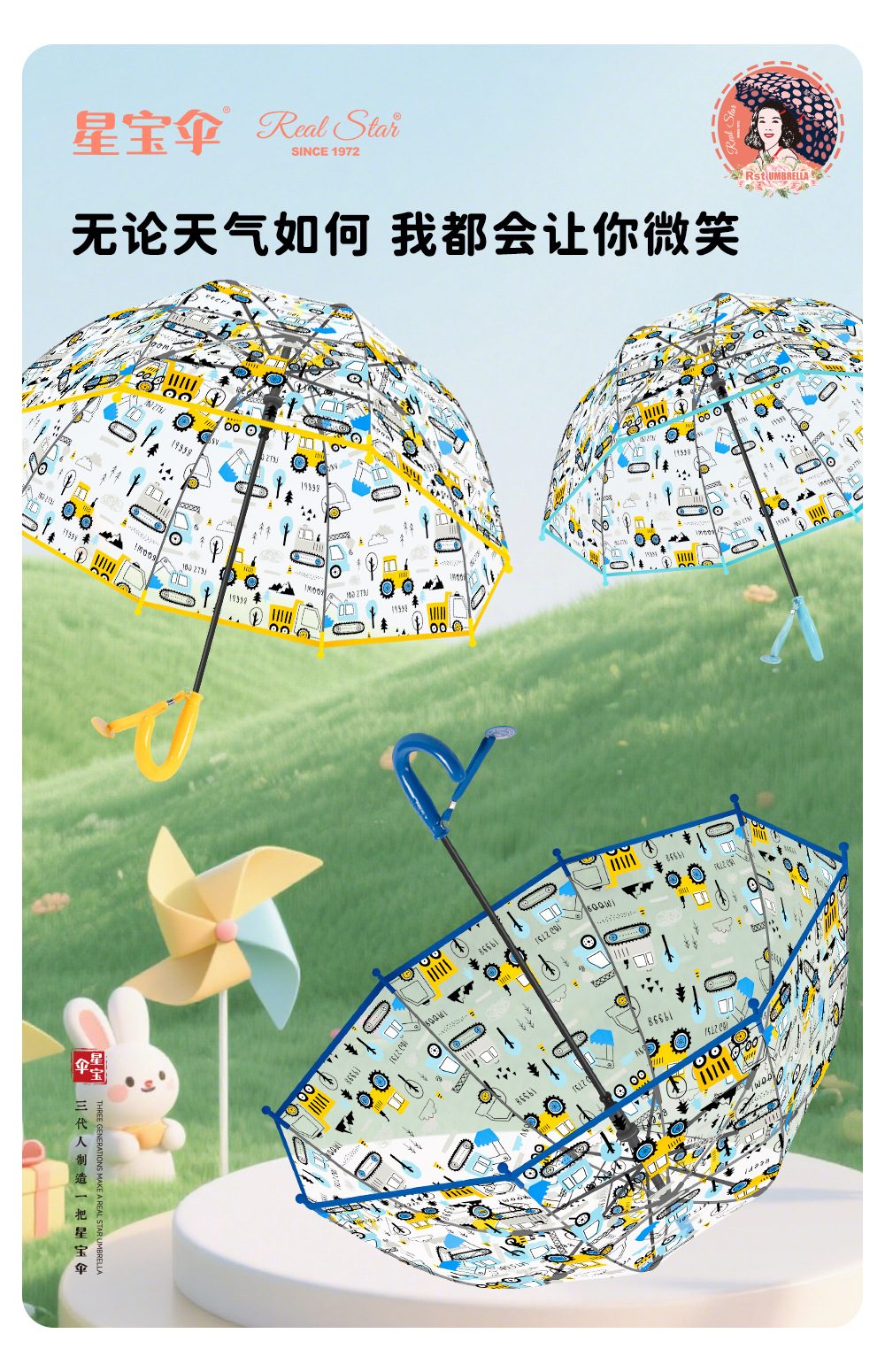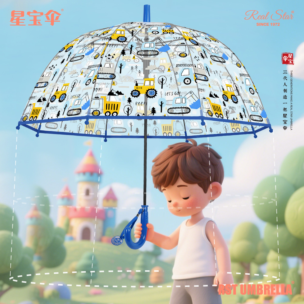 [크로스-국경 새 어린이 우산 귀여운 만화 POE 투명 우산 굴착기 불도저 패턴 자동 우산 재고스토어 가기