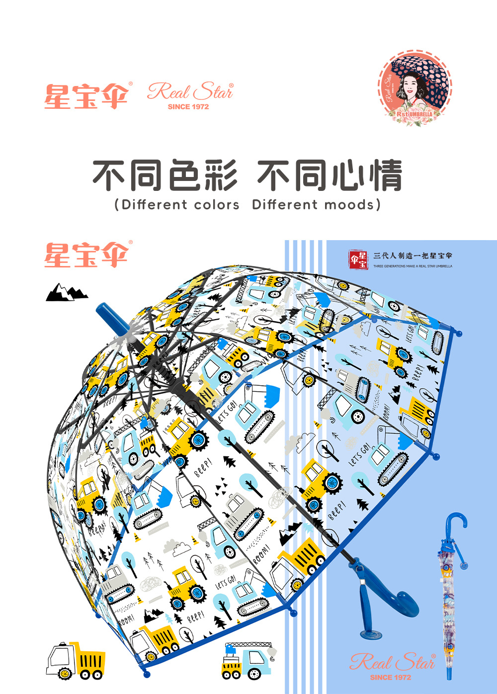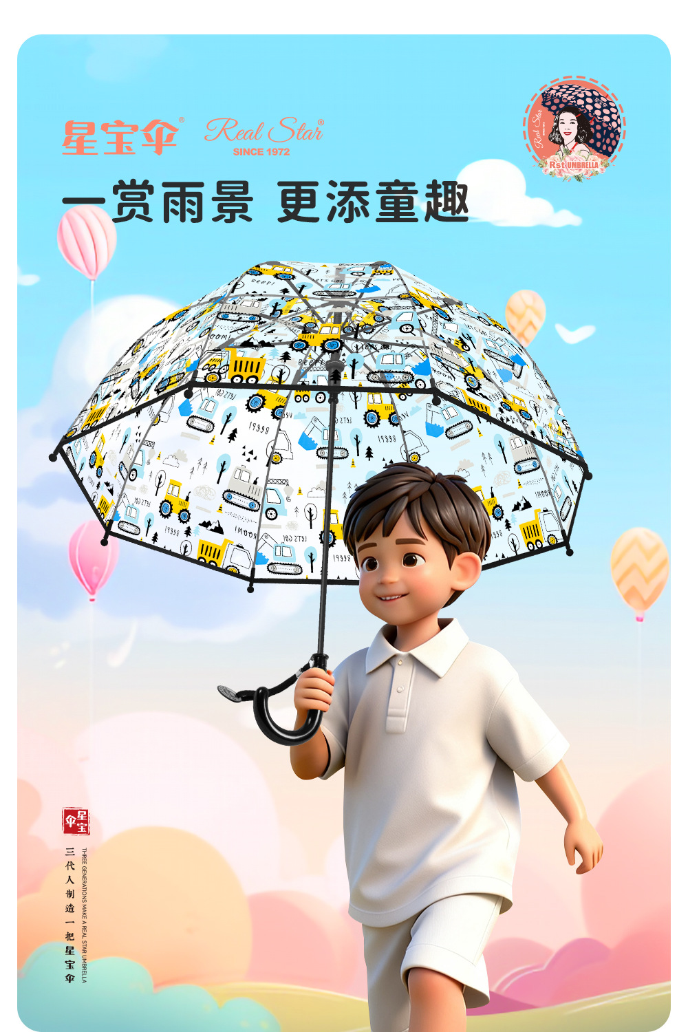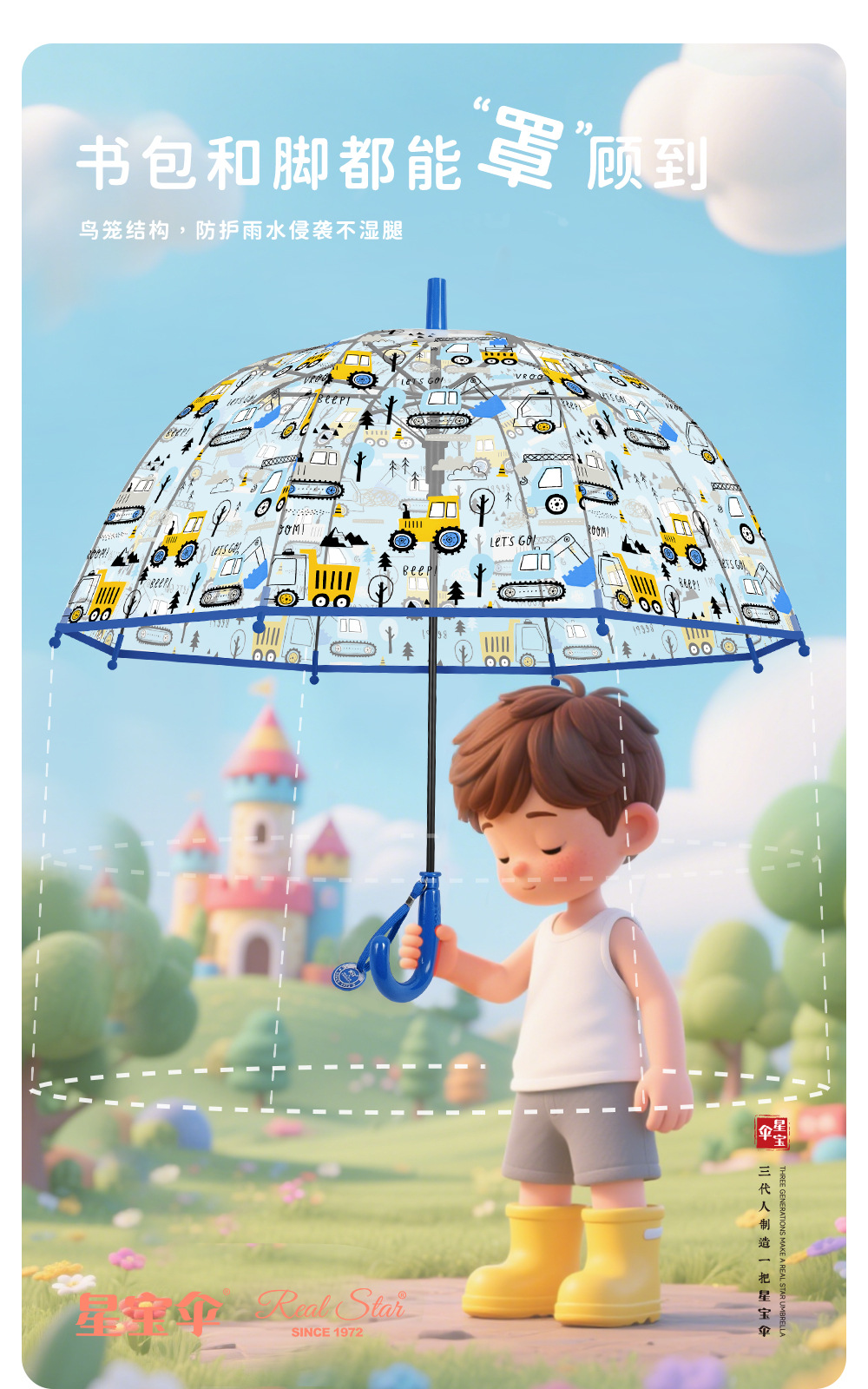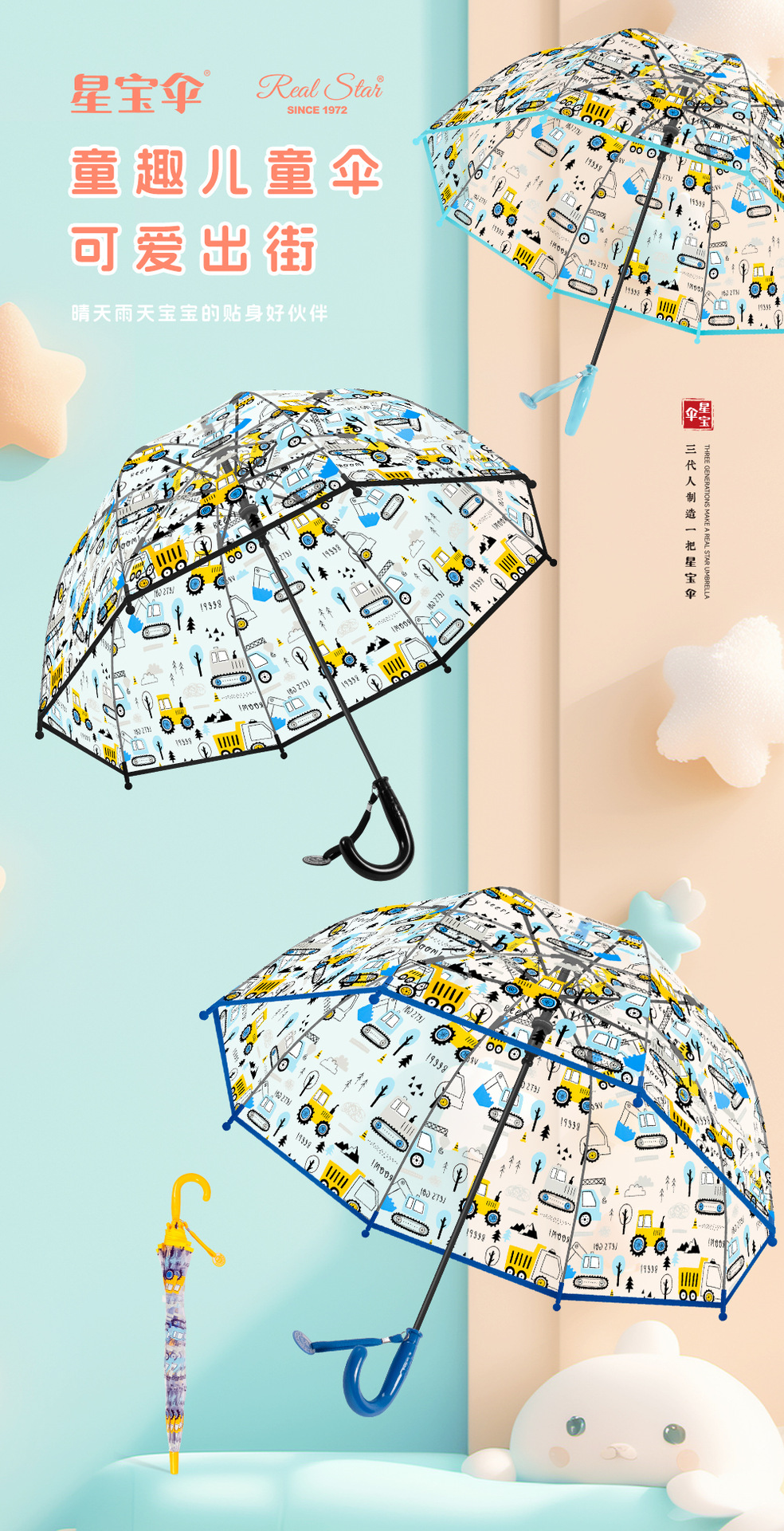 [크로스-국경 새 어린이 우산 귀여운 만화 POE 투명 우산 굴착기 불도저 패턴 자동 우산 재고스토어 가기