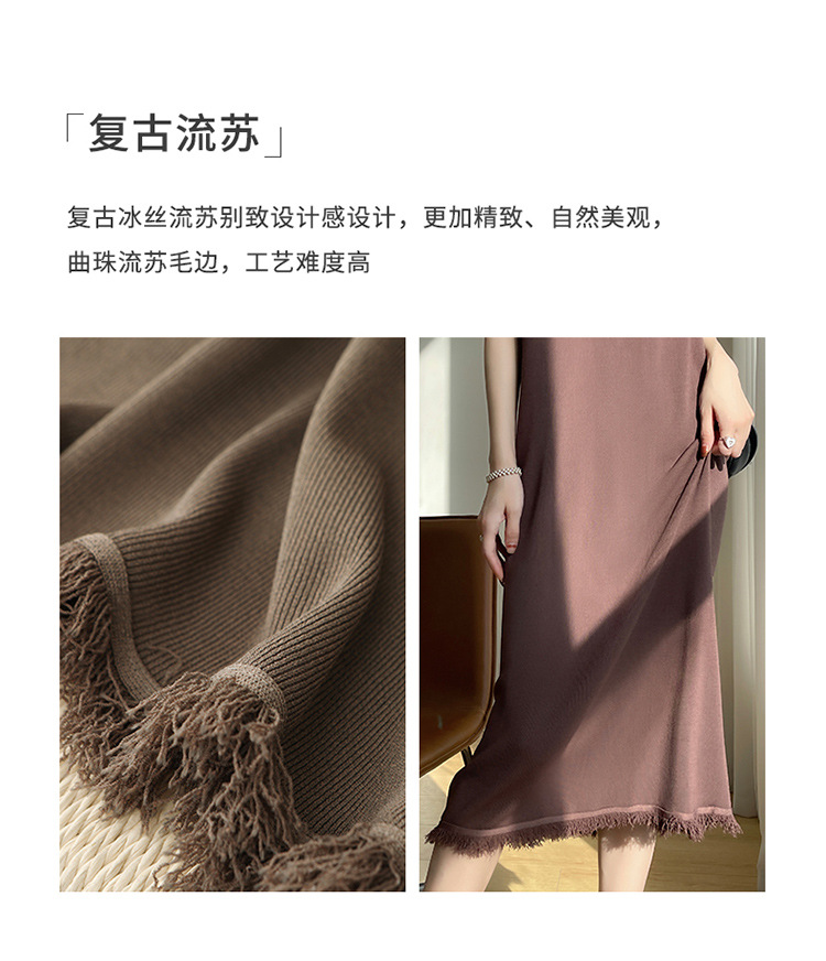 여름 와이드 숄더 민소매 롱 니트 원피스 심플 라운드 넥 느슨한 레이드 백 드레이핑 무릎 위 무릎 원피스스토어 가기