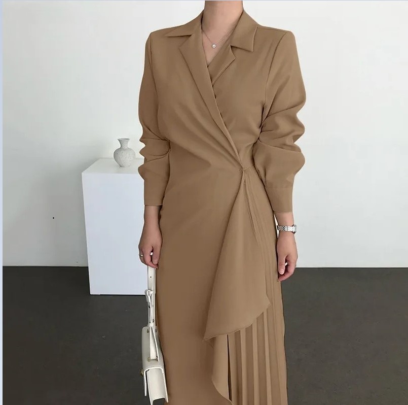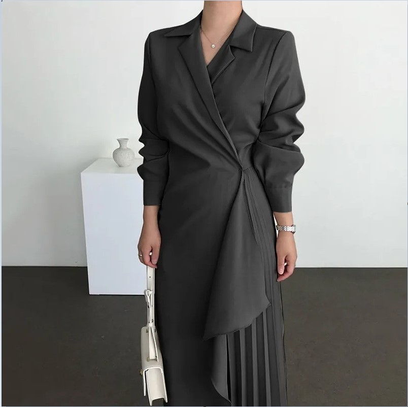 2025 새로운 여성의 공식 우아한 셔츠 원피스 복고풍 긴 단색 긴 허리 원피스스토어 가기