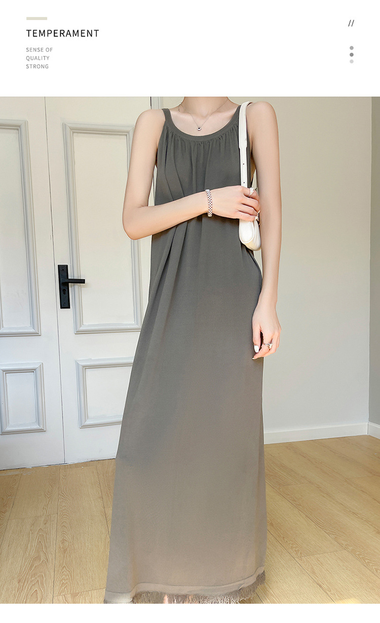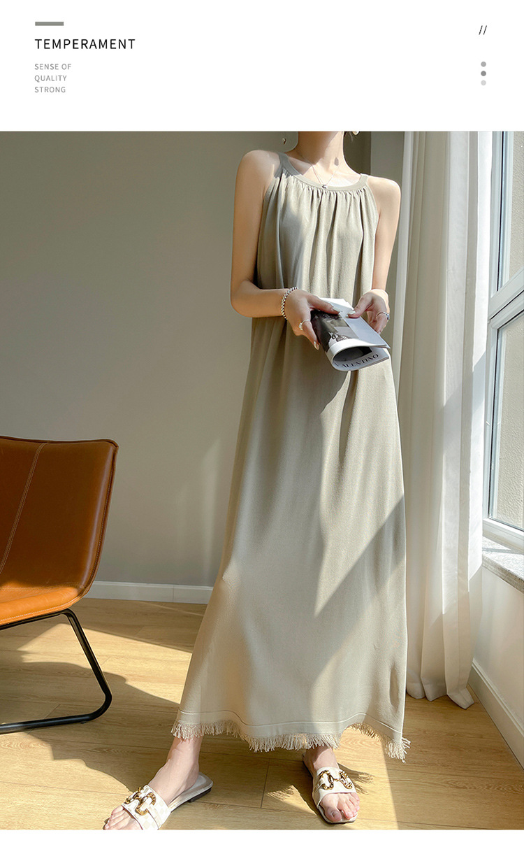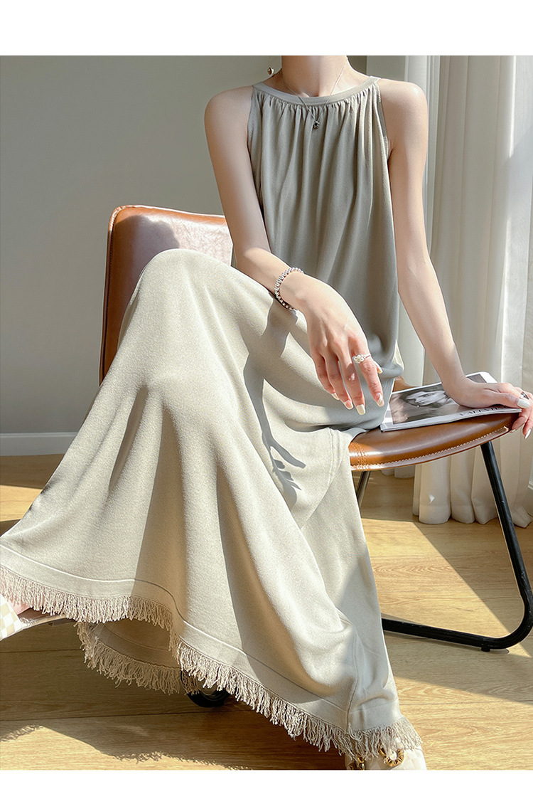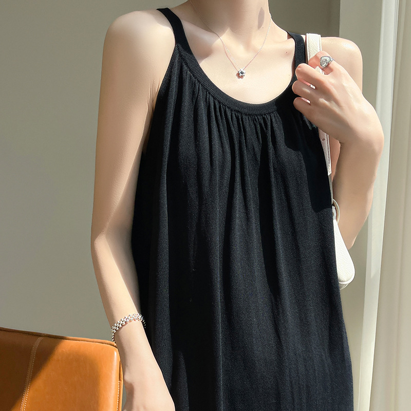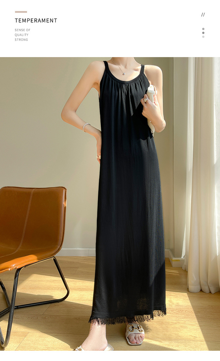 2023 봄과 여름 새로운 in 여성용 니트 슬링 원피스 섹시한 라운드 넥 슈퍼 롱 블랙 스커트스토어 가기