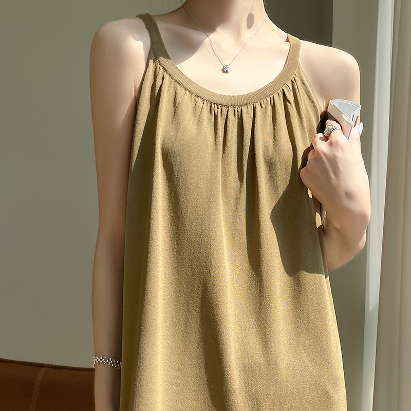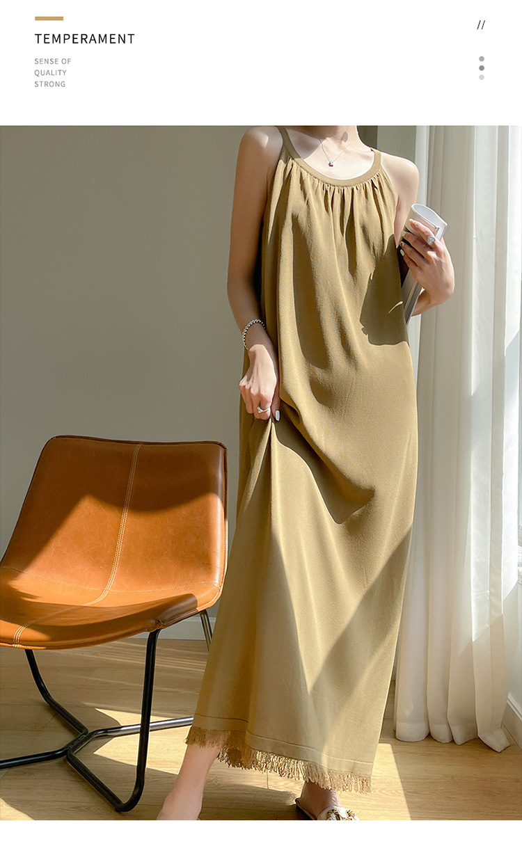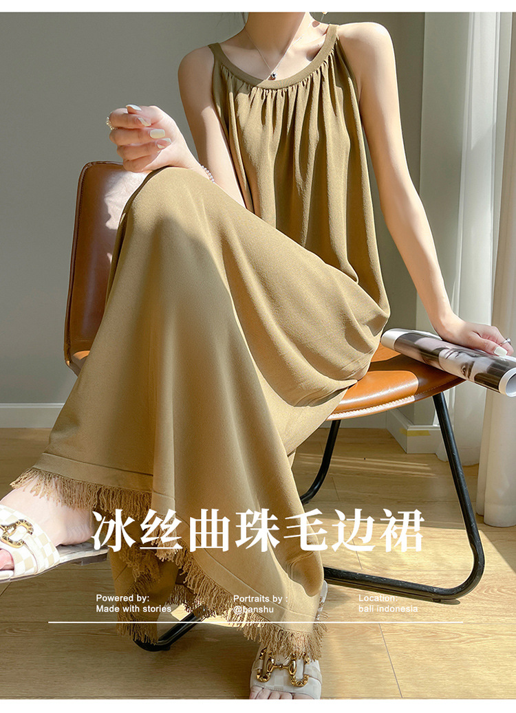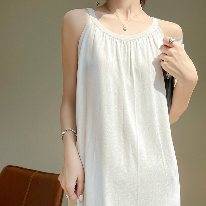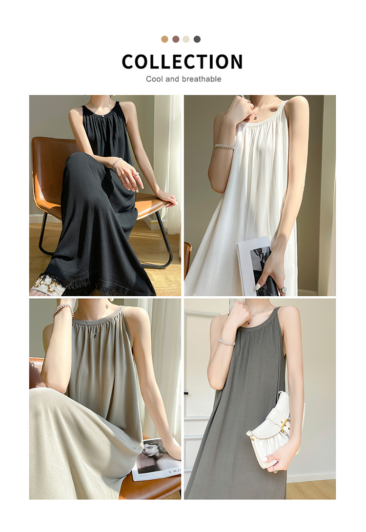 2023 봄과 여름 새로운 in 여성용 니트 슬링 원피스 섹시한 라운드 넥 슈퍼 롱 블랙 스커트스토어 가기