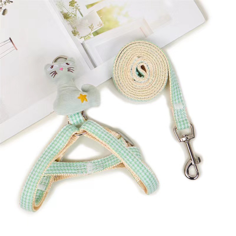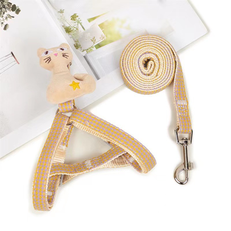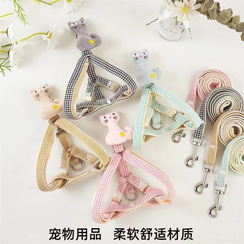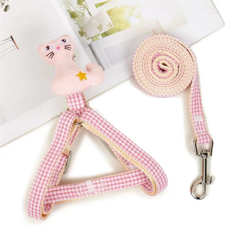 중소 개 가슴 끈 개 산책 가죽 끈 고양이 인형 격자 무늬 가슴 끈 개 가죽 끈 애완 동물 안티 브레이크 로프