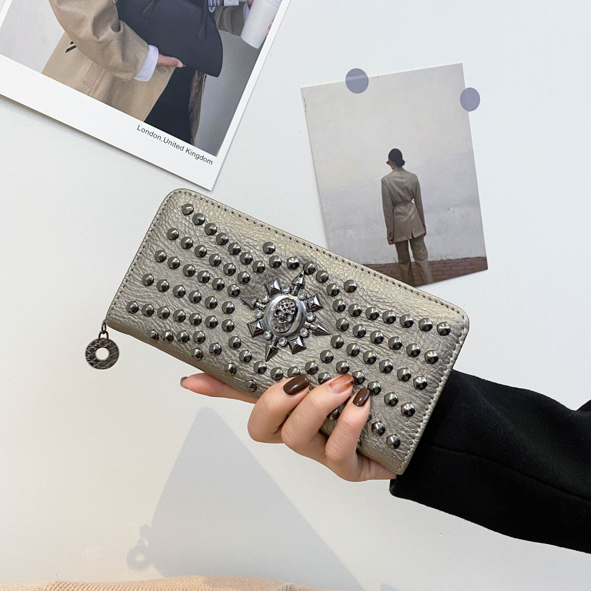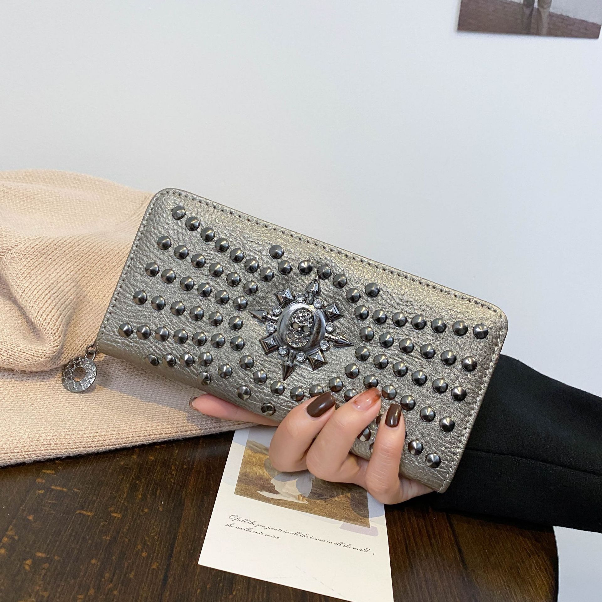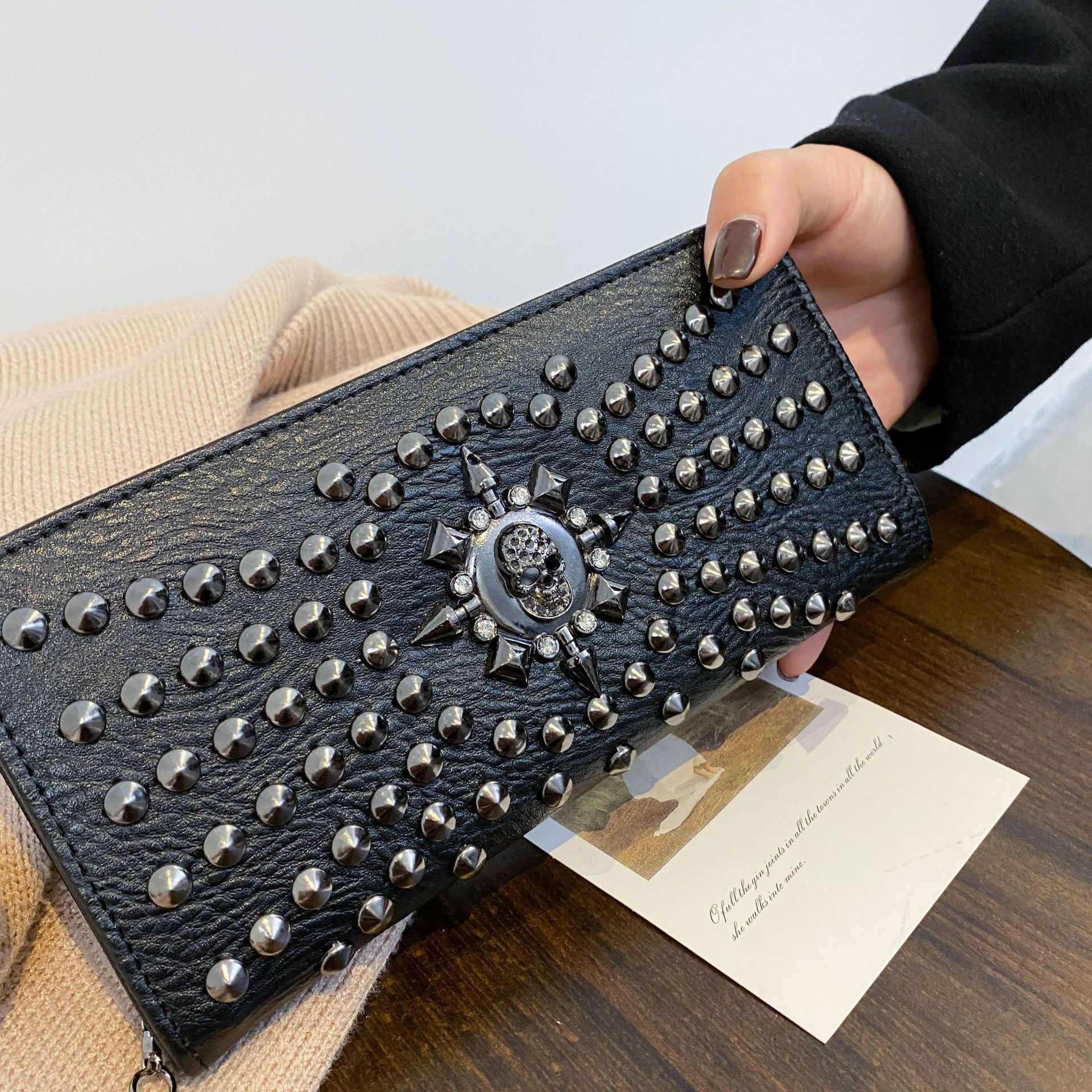 해외 무역 해골 모양 여성 지갑 동전 지갑 다중 카드 슬롯 핸드백 지갑 속이 빈 대용량 수납스토어 가기